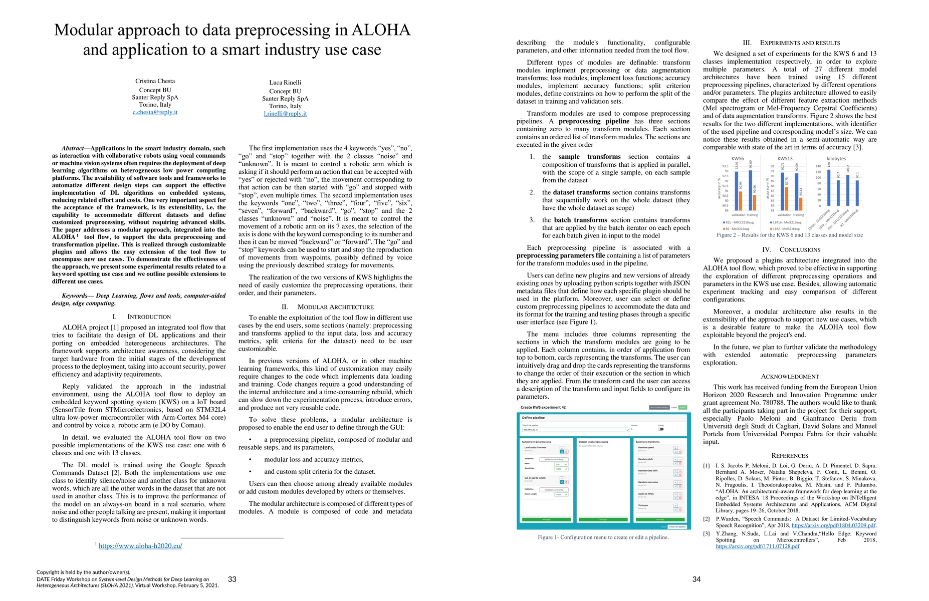 The paper proposes a modular data preprocessing approach integrated into the ALOHA tool flow to facilitate the implementation of deep learning algorithms on low-power computing platforms. The approach uses customizable plugins to enhance the tool's extensibility and ease of use, demonstrated through a keyword spotting use case in smart industry applications.