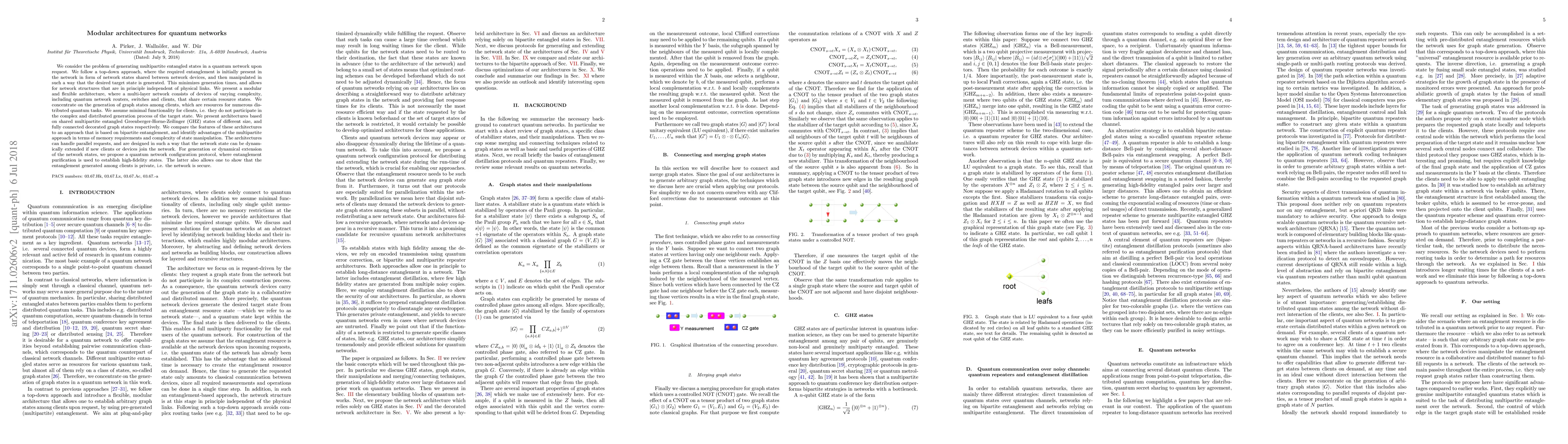 This paper proposes modular architectures for generating multipartite entangled states in quantum networks, focusing on the efficient manipulation of network states to minimize generation times. The architectures utilize multipartite entangled Greenberger-Horne-Zeilinger (GHZ) states and decorated graph states, offering advantages in memory and complexity over bipartite entanglement approaches.