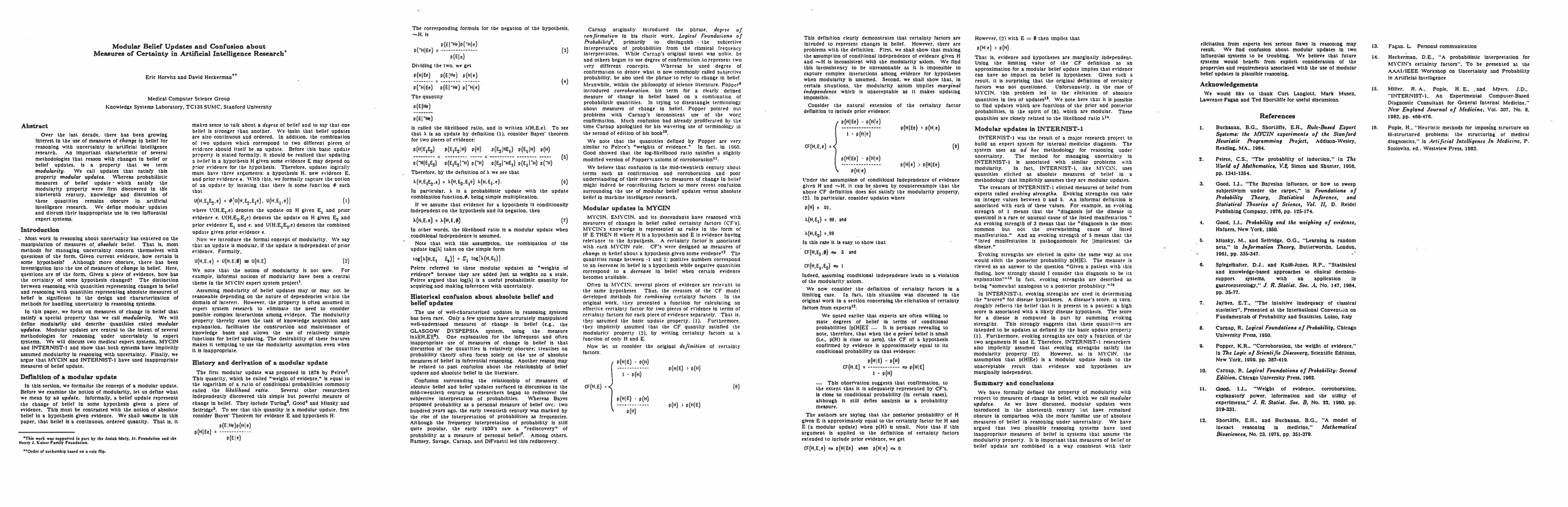 This paper explores modular belief updates, a property of belief change methodologies that has been known since the nineteenth century but remains under-discussed in AI. It critiques the inappropriate application of modular updates in two prominent expert systems, highlighting confusion around measures of certainty in AI research.
