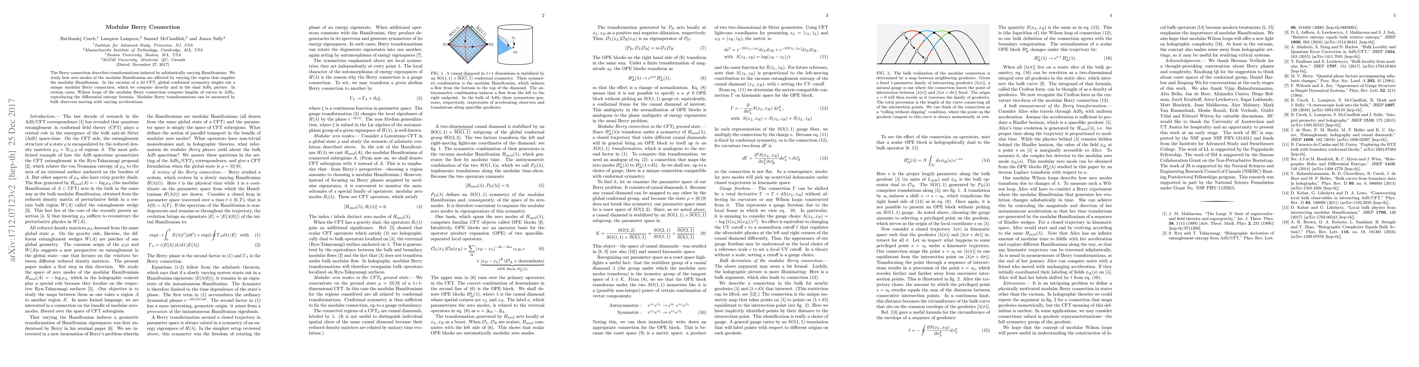 The Berry connection describes transformations induced by adiabatically varying Hamiltonians. We study how zero modes of the modular Hamiltonian are affected by varying the region that supplies the modular Hamiltonian. In the vacuum of a 2d CFT, global conformal symmetry singles out a unique modular Berry connection, which we compute directly and in the dual AdS$_3$ picture. In certain cases, Wilson loops of the modular Berry connection compute lengths of curves in AdS$_3$, reproducing the differential entropy formula. Modular Berry transformations can be measured by bulk observers moving with varying accelerations.