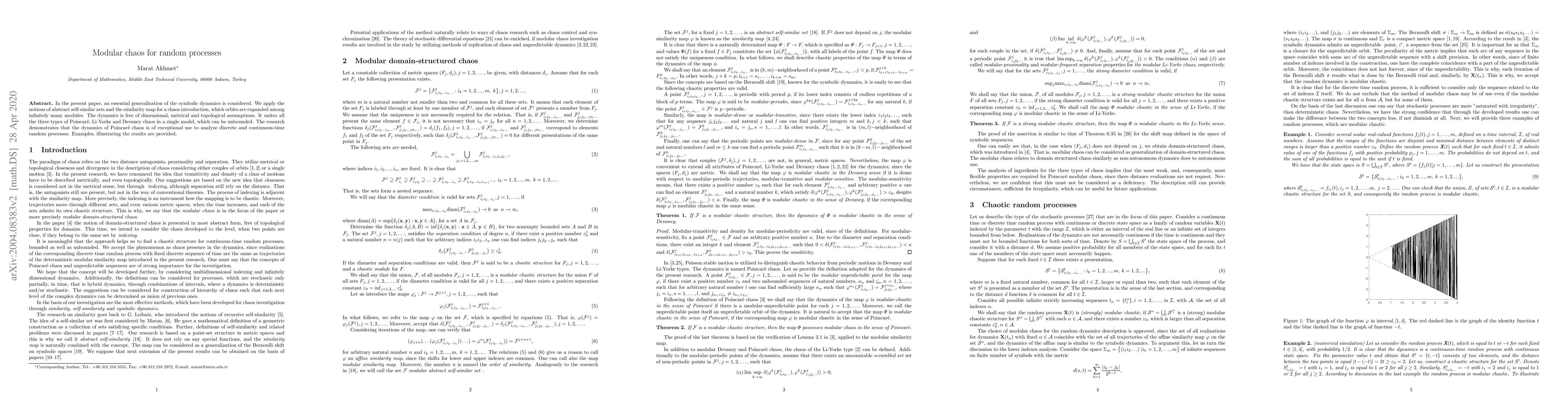 In the present paper, an essential generalization of the symbolic dynamics is considered. We apply the notions of abstract self-similar sets and the similarity map for a chaos introduction, which orbits are expanded among infinitely many modules. The dynamics is free of dimensional, metrical and topological assumptions. It unites all the three types of Poincare, Li-Yorke and Devaney chaos in a single model, which can be unbounded. The research demonstrates that the dynamics of Poincare chaos is of exceptional use to analyze discrete and continuous-time random processes. Examples, illustrating the results are provided.