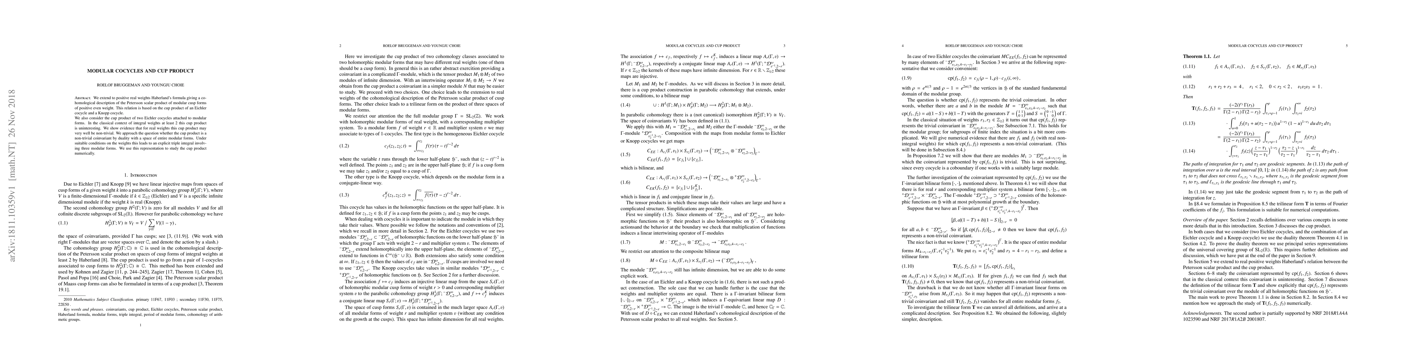 We extend to positive real weights Haberland's formula giving a cohomological description of the Petersson scalar product of modular cusp forms of positive even weight. This relation is based on the cup product of an Eichler cocycle and a Knopp cocycle. We also consider the cup product of two Eichler cocycles attached to modular forms. In the classical context of integral weights at least $2$ this cup product is uninteresting. We show evidence that for real weights this cup product may very well be non-trivial. We approach the question whether the cup product is a non-trivial coinvariant by duality with a space of entire modular forms. Under suitable conditions on the weights this leads to an explicit triple integral involving three modular forms. We use this representation to study the cup product numerically.