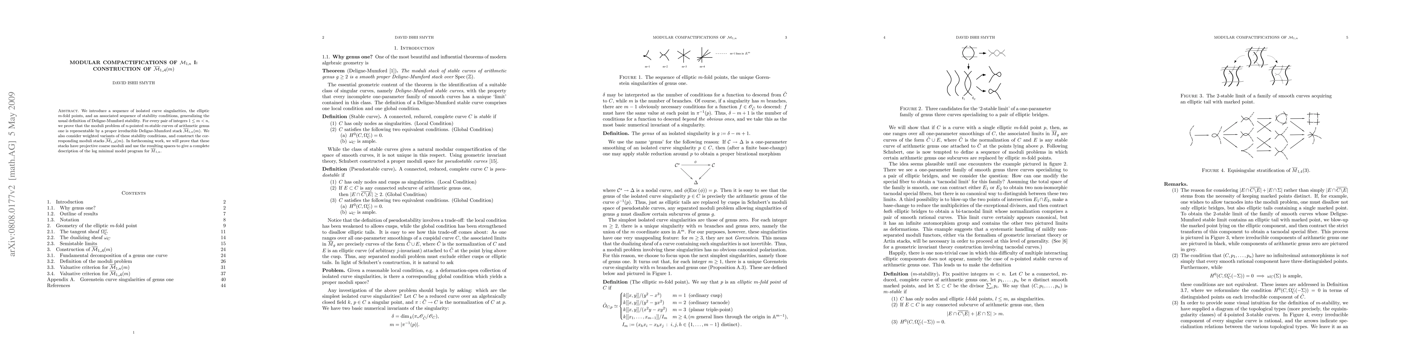 This paper introduces elliptic m-fold points and associated stability conditions for n-pointed curves, proving representability of moduli problems by proper irreducible stacks. Future work aims to show projective coarse moduli and describe the log minimal model program for M_{1,n}.