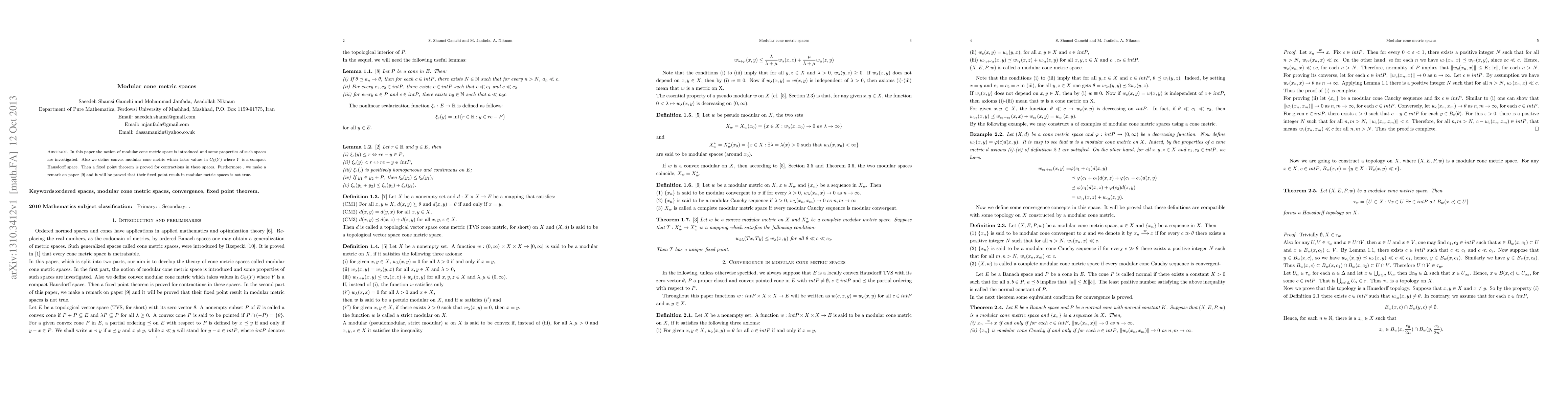 This paper introduces modular cone metric spaces and investigates their properties, defining a convex modular cone metric. A fixed point theorem for contractions in these spaces is proven, and it is shown that a previously claimed fixed point result in modular metric spaces is incorrect.
