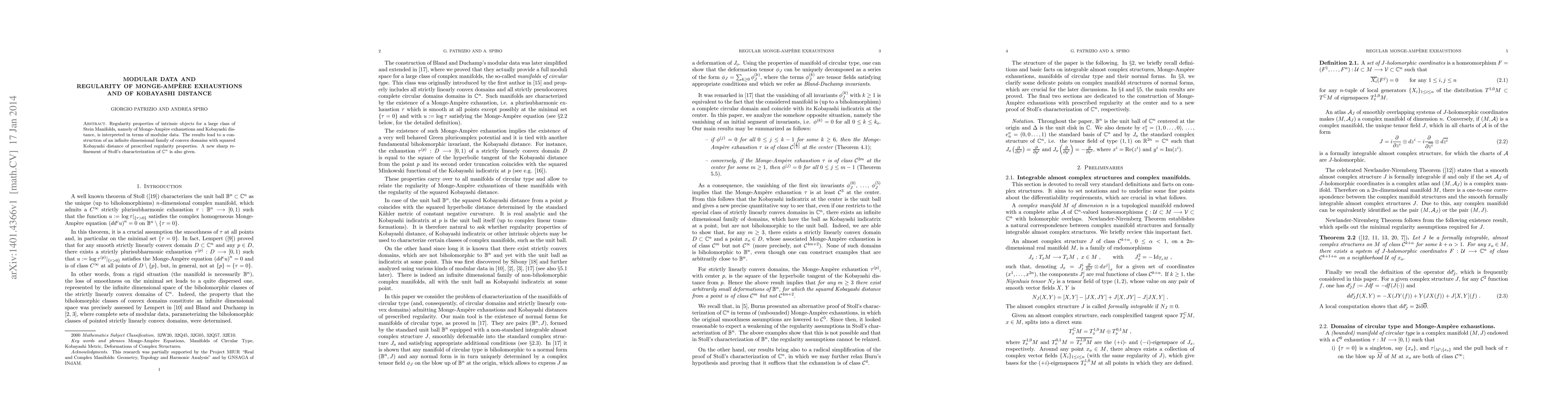 Research investigates modular data's role in understanding regularity properties of Monge-Amp\â\u0208 exhaustions and Kobayashi distance on Stein manifolds, leading to the construction of convex domains with prescribed properties.