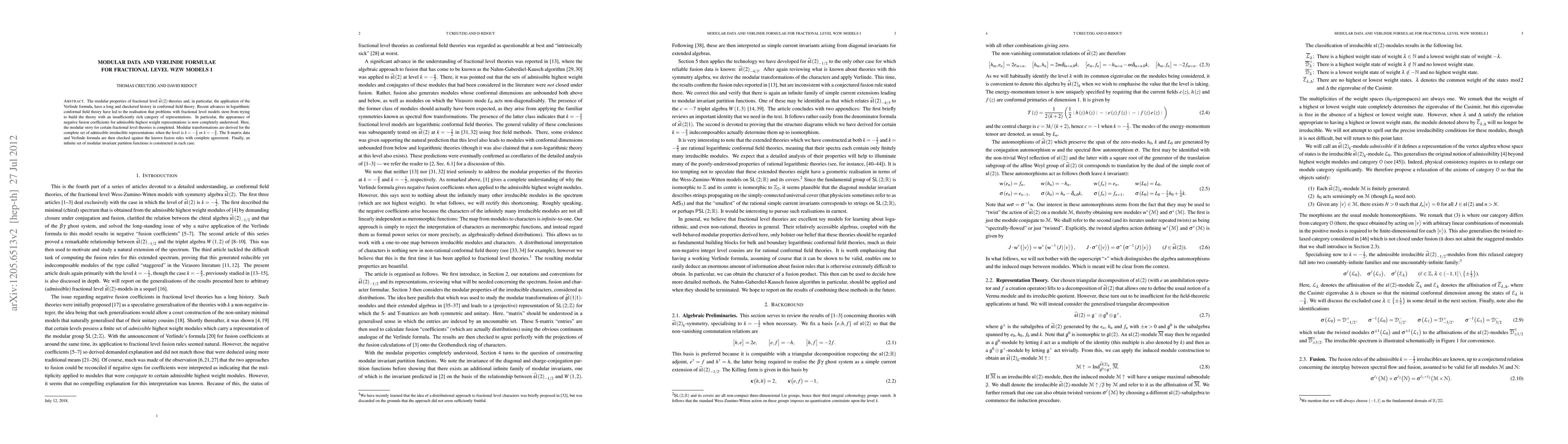 The modular properties of fractional level affine sl(2)-theories and, in particular, the application of the Verlinde formula, have a long and checkered history in conformal field theory. Recent advances in logarithmic conformal field theory have led to the realisation that problems with fractional level models stem from trying to build the theory with an insufficiently rich category of representations. In particular, the appearance of negative fusion coefficients for admissible highest weight representations is now completely understood. Here, the modular story for certain fractional level theories is completed. Modular transformations are derived for the complete set of admissible irreducible representations when the level is k=-1/2 or k=-4/3. The S-matrix data and Verlinde formula are then checked against the known fusion rules with complete agreement. Finally, an infinite set of modular invariant partition functions is constructed in each case.