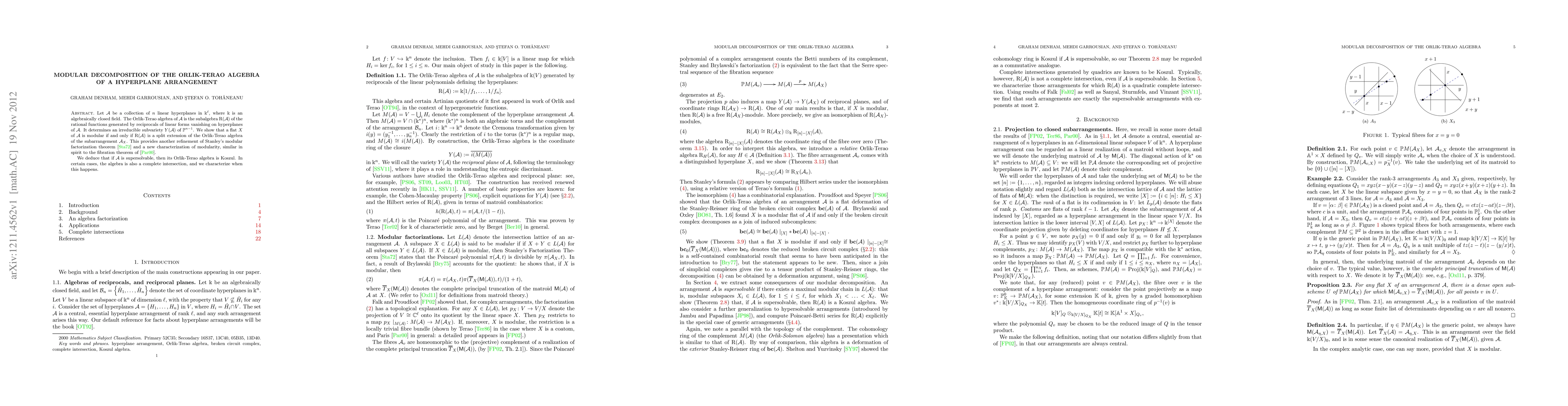 Let A be a collection of n linear hyperplanes in k^l, where k is an algebraically closed field. The Orlik-Terao algebra of A is the subalgebra R(A) of the rational functions generated by reciprocals of linear forms vanishing on hyperplanes of A. It determines an irreducible subvariety of projective space. We show that a flat X of A is modular if and only if R(A) is a split extension of the Orlik-Terao algebra of the subarrangement A_X. This provides another refinement of Stanley's modular factorization theorem and a new characterization of modularity, similar in spirit to the modular fibration theorem of Paris. We deduce that if A is supersolvable, then its Orlik-Terao algebra is Koszul. In certain cases, the algebra is also a complete intersection, and we characterize when this happens.