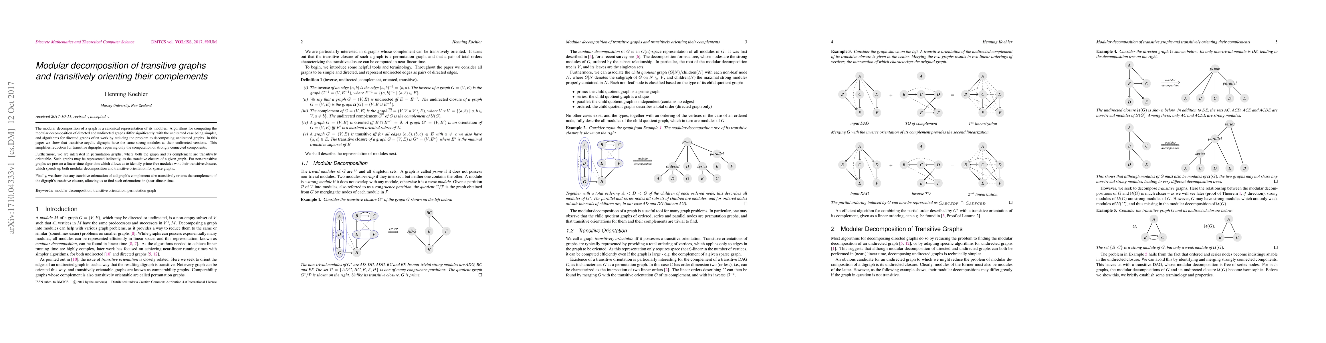 The modular decomposition of a graph is a canonical representation of its modules. Algorithms for computing the modular decomposition of directed and undirected graphs differ significantly, with the undirected case being simpler, and algorithms for directed graphs often work by reducing the problem to decomposing undirected graphs. In this paper we show that transitive acyclic digraphs have the same strong modules as their undirected versions. This simplifies reduction for transitive digraphs, requiring only the computation of strongly connected components. Furthermore, we are interested in permutation graphs, where both the graph and its complement are transitively orientable. Such graphs may be represented indirectly, as the transitive closure of a given graph. For non-transitive graphs we present a linear-time algorithm which allows us to identify prime-free modules w.r.t their transitive closure, which speeds up both modular decomposition and transitive orientation for sparse graphs. Finally, we show that any transitive orientation of a digraph's complement also transitively orients the complement of the digraph's transitive closure, allowing us to find such orientations in (near-)linear time.