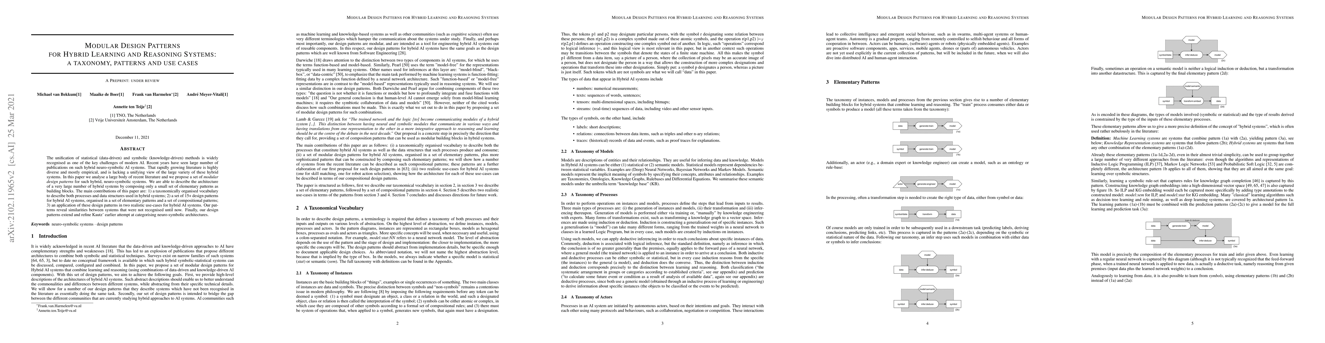 This paper proposes a taxonomy and set of modular design patterns to unify and describe hybrid neuro-symbolic AI systems, revealing unrecognized similarities and extending previous categorizations. The key contributions include a vocabulary for hybrid systems, over 15 design patterns, and their application in two use cases.