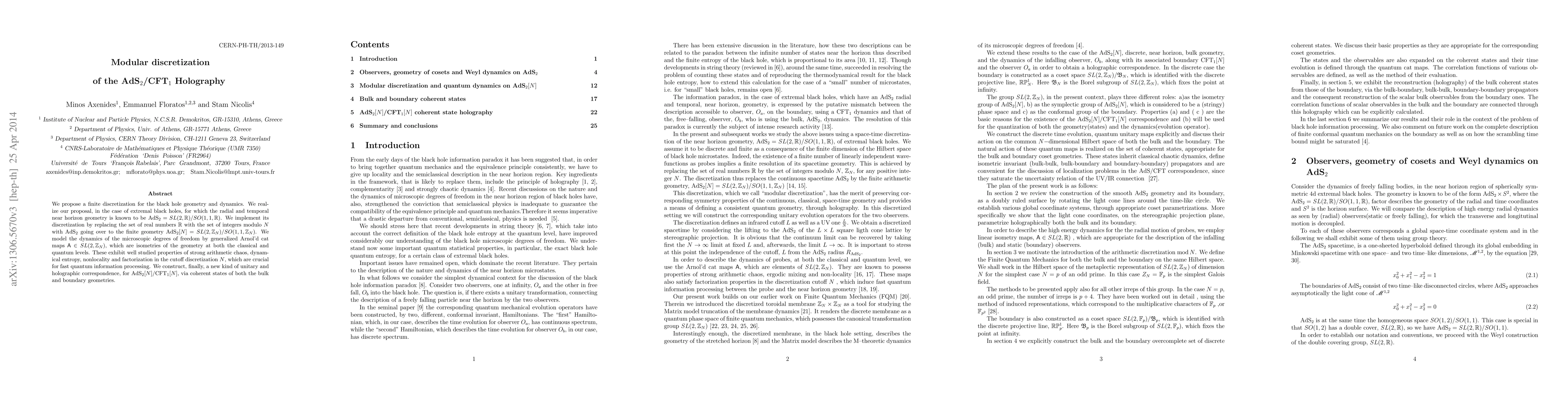 This paper proposes a finite discretization of the AdS$_2$/CFT$_1$ holographic correspondence by replacing real numbers with integers modulo $N$, transforming AdS$_2$ into AdS$_2[N]$. The dynamics are modeled using generalized Arnol'd cat maps, which exhibit properties crucial for quantum information processing, and a new unitary holographic correspondence is constructed via coherent states.