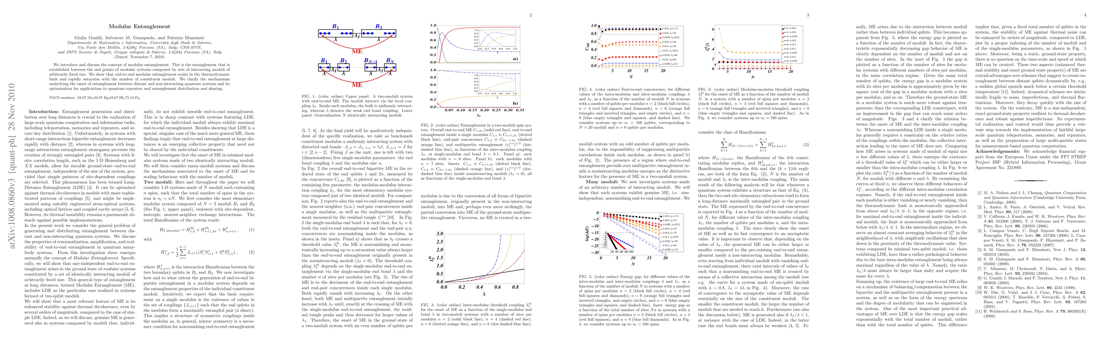 This paper explores modular entanglement, demonstrating its scaling in large systems and saturation with more moduli. It elucidates the mechanisms for optimizing entanglement between distant quantum systems for applications in quantum repeaters and distribution.