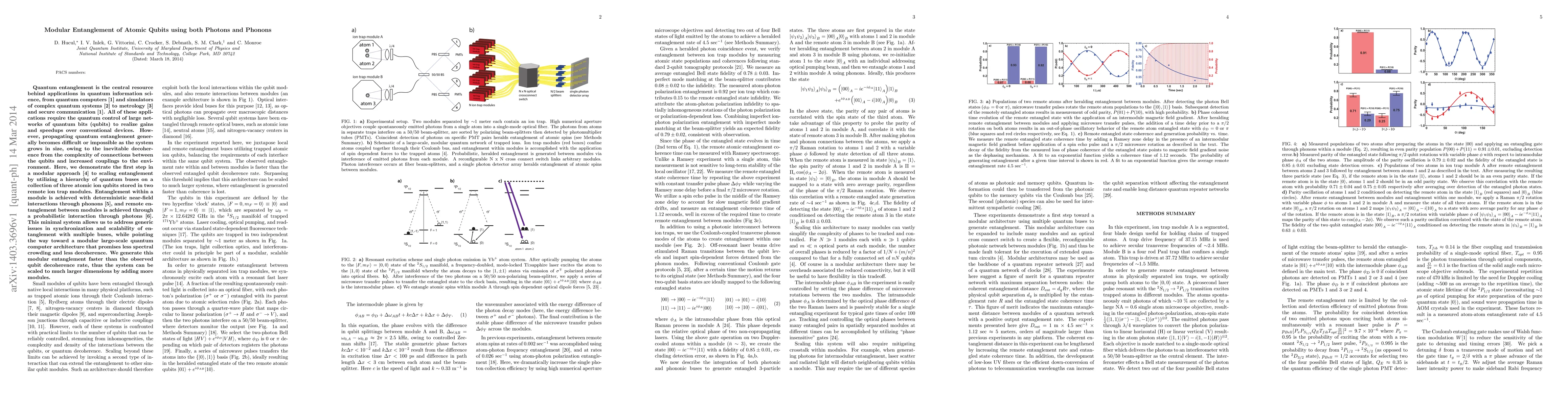 This paper demonstrates a modular approach to scaling quantum entanglement using atomic qubit modules connected via phonons and photons, achieving faster entanglement generation than qubit decoherence, paving the way for scalable large-scale quantum computing.