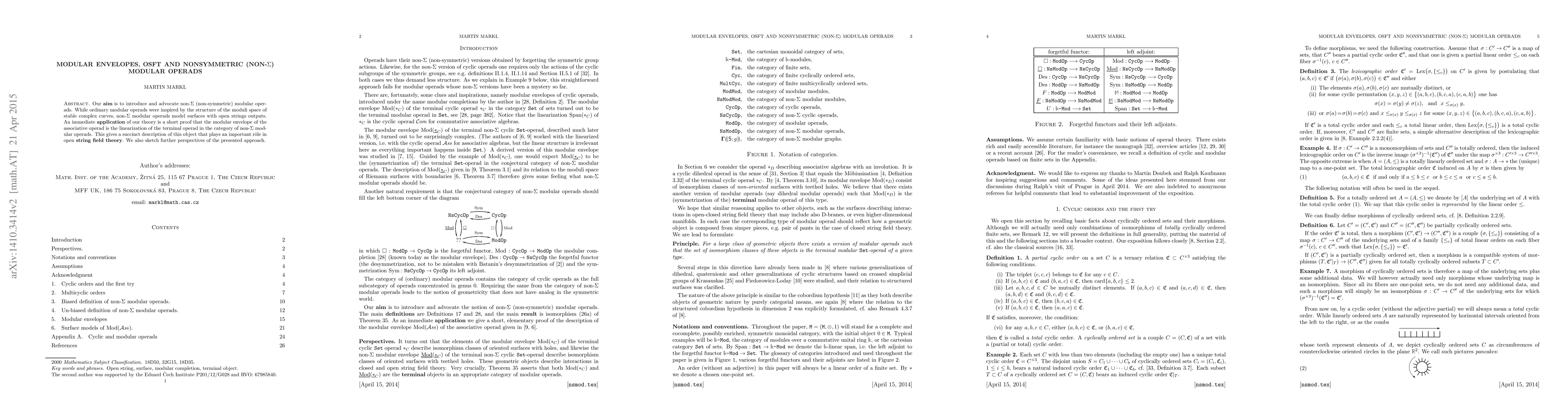 The paper introduces non-$\Sigma$ modular operads to model surfaces with open string outputs, contrasting with ordinary modular operads inspired by moduli spaces of complex curves. It provides a concise proof that the modular envelope of the associative operad is the linearization of the terminal operad in this new category, offering an important insight for open string field theory.