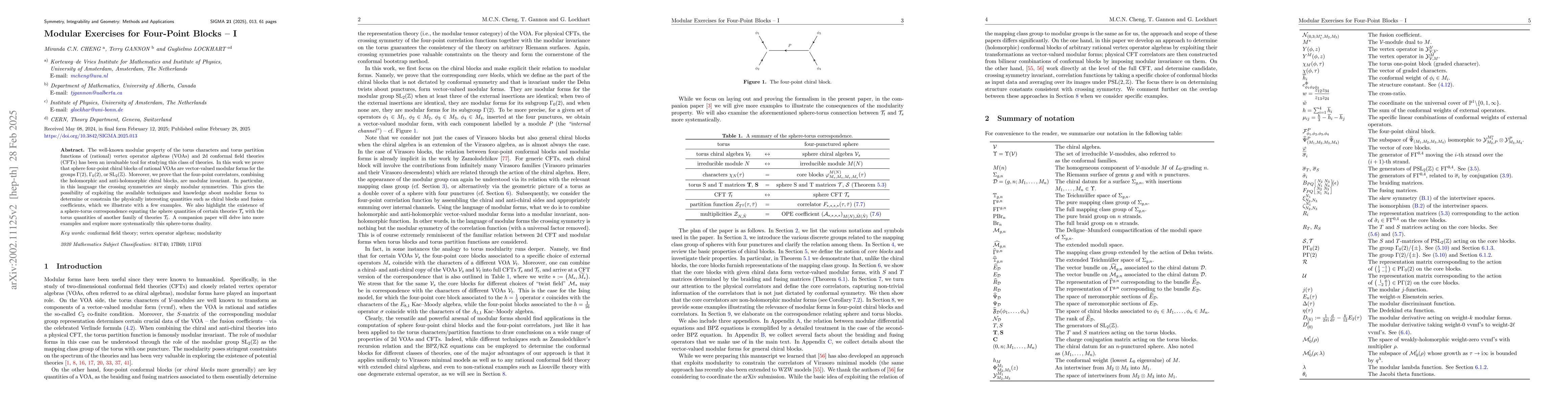 Researchers prove that sphere four-point chiral blocks of rational vertex operator algebras are modular forms, allowing for the use of techniques from modular forms to study their properties.