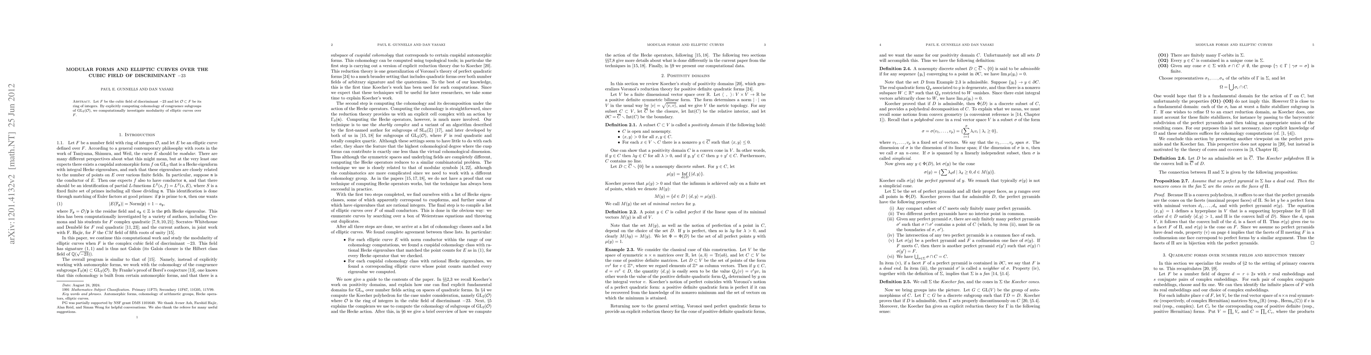 Let F be the cubic field of discriminant -23 and let O be its ring of integers. By explicitly computing cohomology of congruence subgroups of GL(2,O), we computationally investigate modularity of elliptic curves over F.