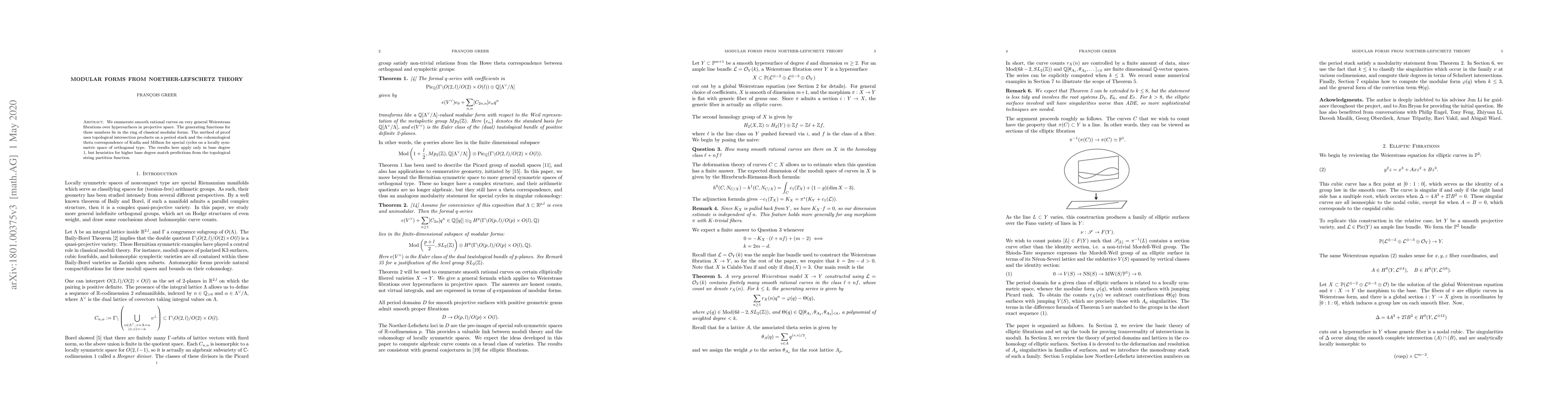 We enumerate smooth rational curves on very general Weierstrass fibrations over hypersurfaces in projective space. The generating functions for these numbers lie in the ring of classical modular forms. The method of proof uses topological intersection products on a period stack and the cohomological theta correspondence of Kudla and Millson for special cycles on a locally symmetric space of orthogonal type. The results here apply only in base degree 1, but heuristics for higher base degree match predictions from the topological string partition function.