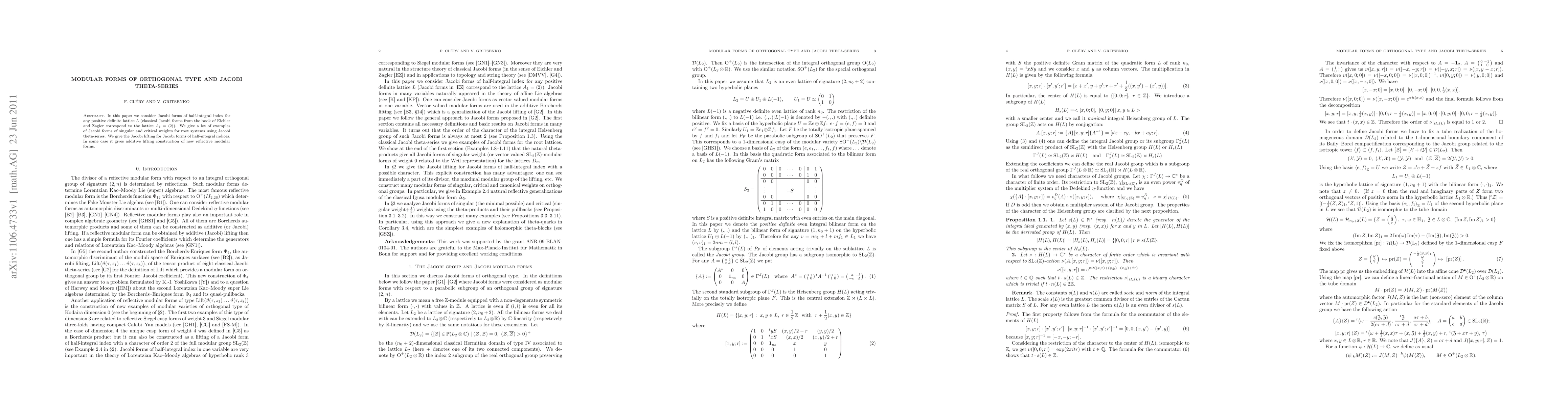 This paper explores Jacobi forms of half-integral index for various positive definite lattices, providing examples using Jacobi theta-series and describing the Jacobi lifting process, which sometimes yields new reflective modular forms.