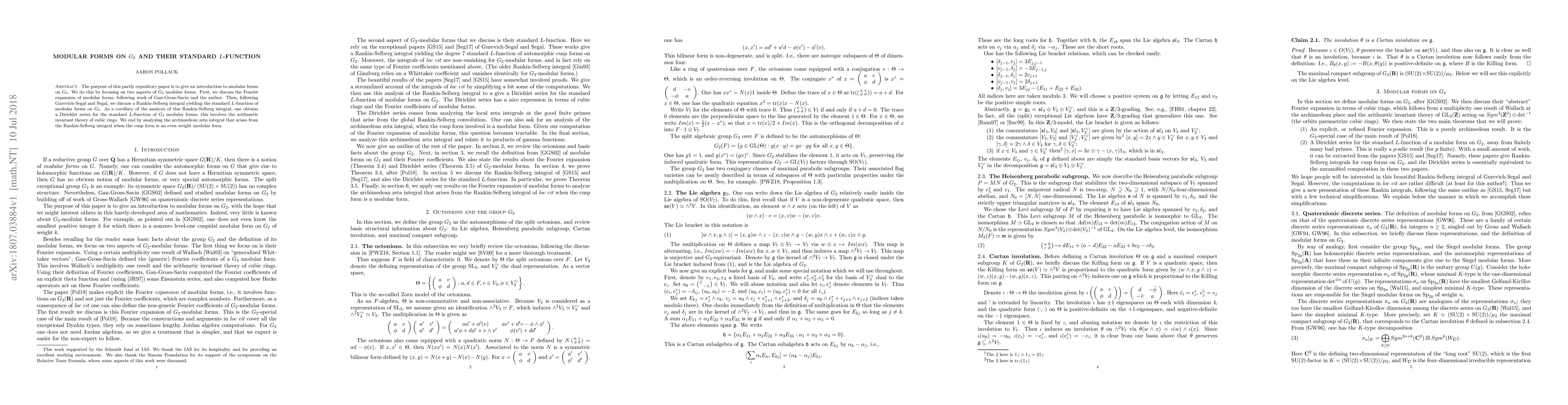 This paper introduces modular forms on $G_2$ and their standard $L$-function, analyzing the Fourier expansion and Rankin-Selberg integral to derive a Dirichlet series for the $L$-function.