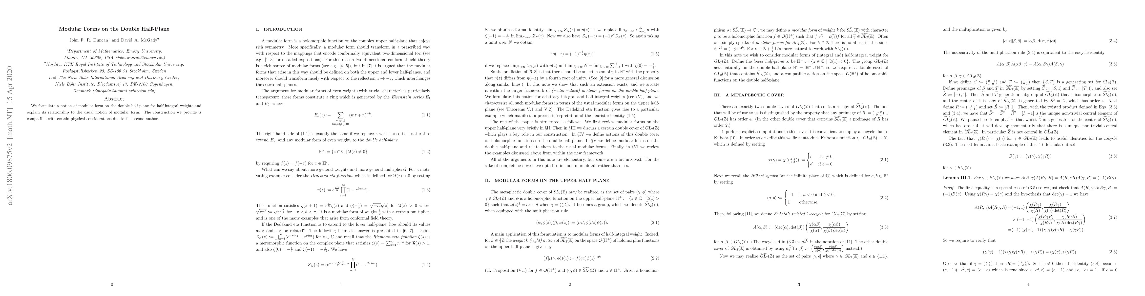 Researchers introduce a new notion of modular form on the double half-plane for half-integral weights, exploring its connection to traditional modular forms with physical implications.