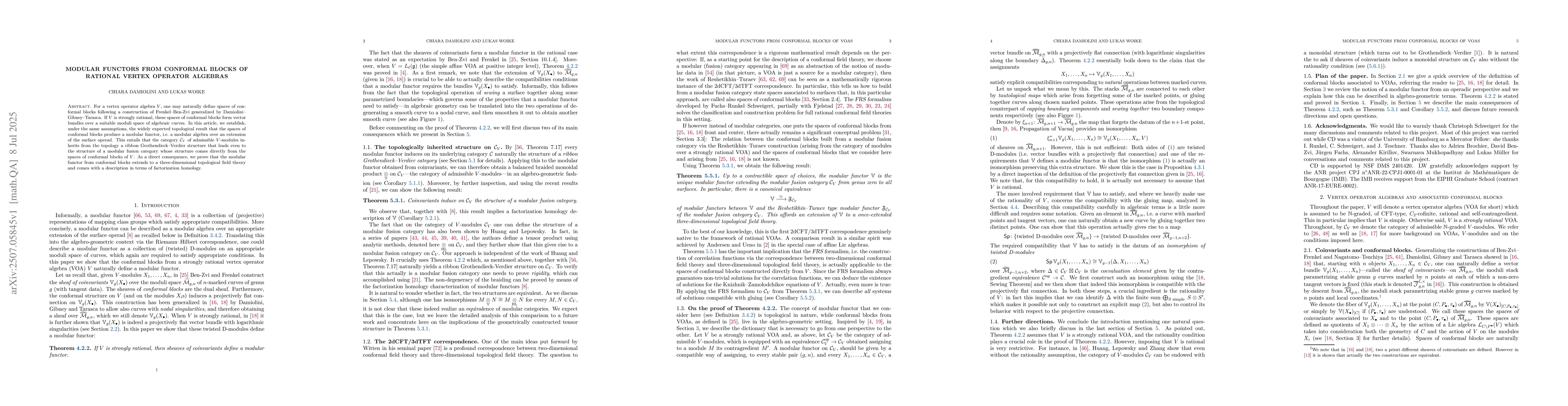 This research establishes that for strongly rational vertex operator algebras, spaces of conformal blocks form a modular functor, leading to a ribbon Grothendieck-Verdier structure on the category of admissible modules. This structure creates a modular fusion category, and the modular functor extends to a three-dimensional topological field theory, described via factorization homology.