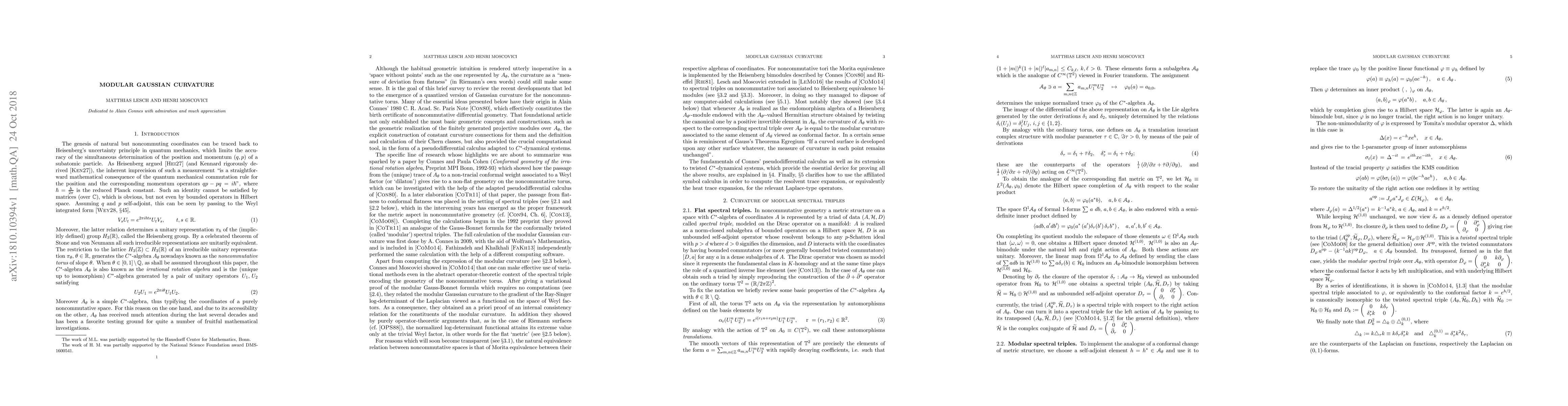 We review the state of the art of our understanding of the conformal geometry of the irrational rotation algebra. This was sparked by a paper by Cohen and Connes. We review the more recent progress made by Connes and the second named author and the work of the authors of this review.