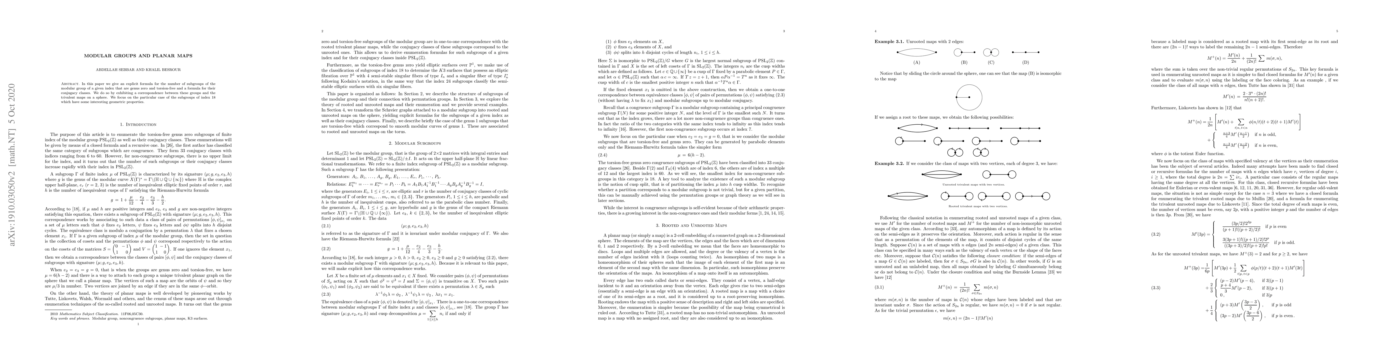 This paper provides an explicit formula for the number of genus zero, torsion-free subgroups of the modular group of a given index, establishing a correspondence between these subgroups and trivalent maps on a sphere, with a special focus on subgroups of index 18.