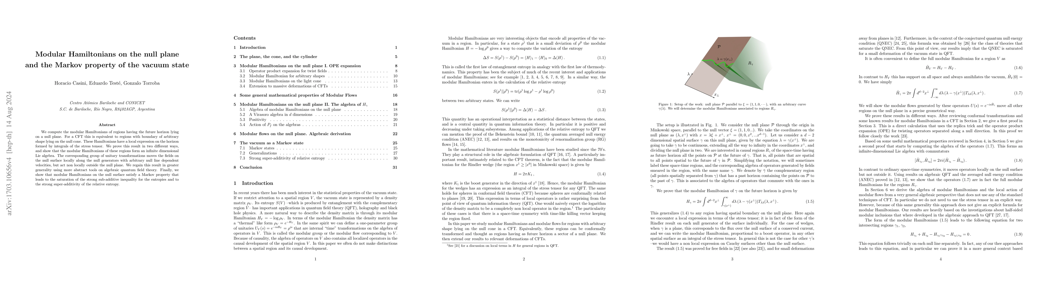 This paper computes modular Hamiltonians for regions with future horizons on a null plane in CFTs, showing they form an infinite-dimensional Lie algebra. It demonstrates that these Hamiltonians exhibit a Markov property, leading to the saturation of strong sub-additive entropy inequalities and the strong super-additivity of relative entropy.