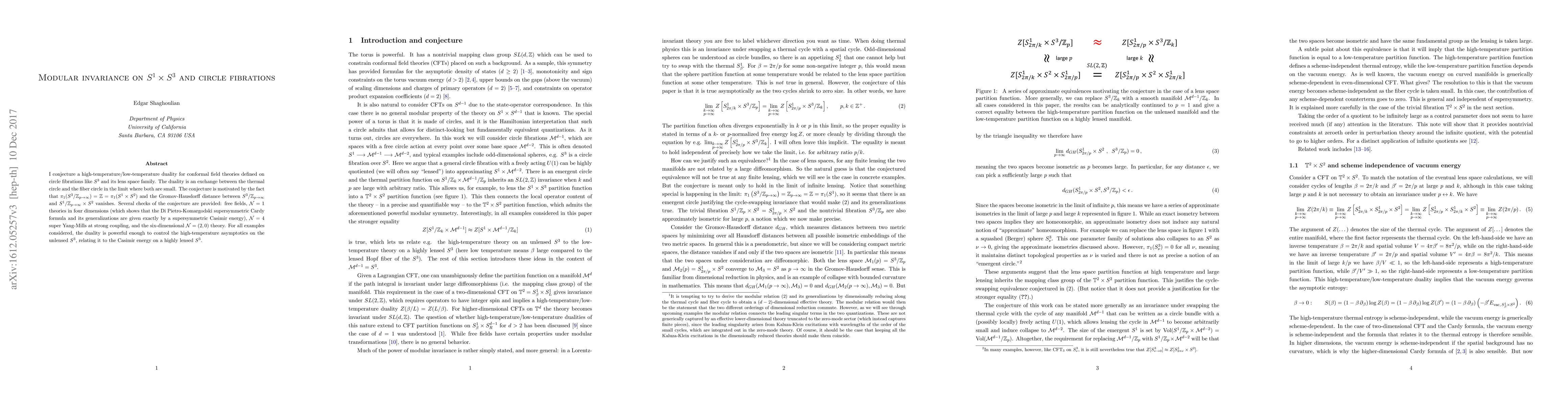 I conjecture a high-temperature/low-temperature duality for conformal field theories defined on circle fibrations like $S^3$ and its lens space family. The duality is an exchange between the thermal circle and the fiber circle in the limit where both are small. The conjecture is motivated by the fact that $\pi_1(S^3/\mathbb{Z}_{p\rightarrow \infty})=\mathbb{Z}=\pi_1(S^1\times S^2)$ and the Gromov-Hausdorff distance between $S^3/\mathbb{Z}_{p\rightarrow \infty}$ and $S^1/\mathbb{Z}_{p\rightarrow \infty} \times S^2$ vanishes. Several checks of the conjecture are provided: free fields, $\mathcal{N}=1$ theories in four dimensions (which shows that the Di Pietro-Komargodski supersymmetric Cardy formula and its generalizations are given exactly by a supersymmetric Casimir energy), $\mathcal{N}=4$ super Yang-Mills at strong coupling, and the six-dimensional $\mathcal{N}=(2,0)$ theory. For all examples considered, the duality is powerful enough to control the high-temperature asymptotics on the unlensed $S^3$, relating it to the Casimir energy on a highly lensed $S^3$.