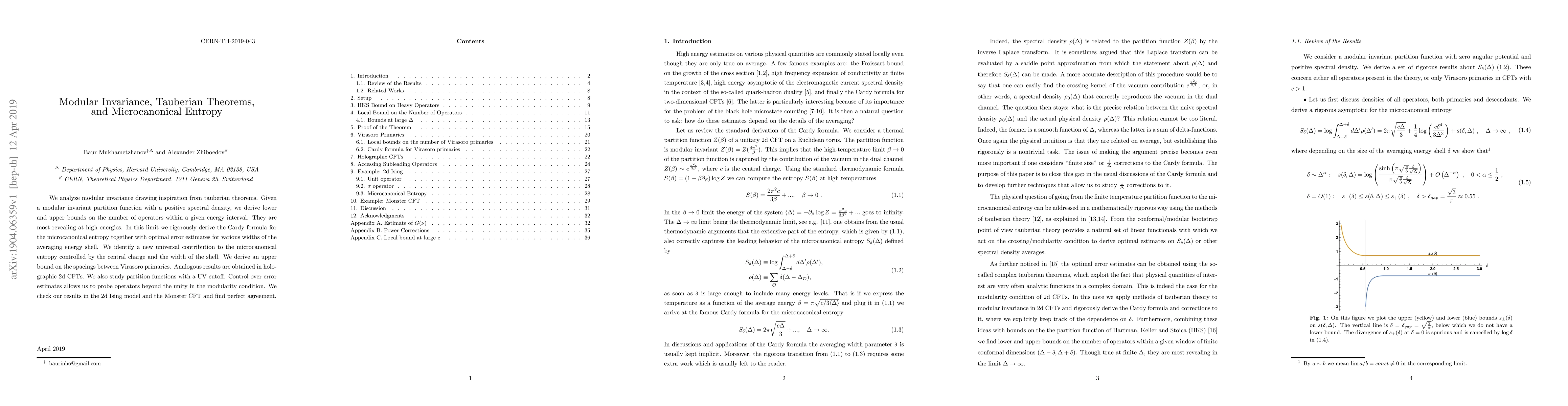 We analyze modular invariance drawing inspiration from tauberian theorems. Given a modular invariant partition function with a positive spectral density, we derive lower and upper bounds on the number of operators within a given energy interval. They are most revealing at high energies. In this limit we rigorously derive the Cardy formula for the microcanonical entropy together with optimal error estimates for various widths of the averaging energy shell. We identify a new universal contribution to the microcanonical entropy controlled by the central charge and the width of the shell. We derive an upper bound on the spacings between Virasoro primaries. Analogous results are obtained in holographic 2d CFTs. We also study partition functions with a UV cutoff. Control over error estimates allows us to probe operators beyond the unity in the modularity condition. We check our results in the 2d Ising model and the Monster CFT and find perfect agreement.