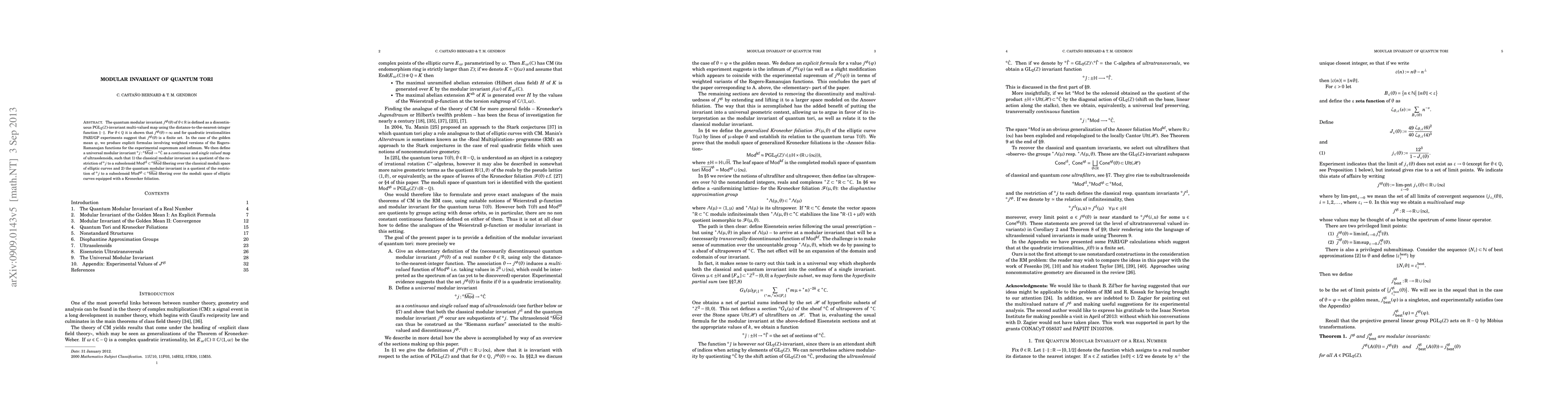 The paper explores the quantum modular invariant of real numbers, revealing it to be infinite on rationals and finite for quadratic irrationalities, with explicit formulas for the golden mean. It introduces a universal modular invariant defined for ultrasolenoids, linking classical and quantum modular invariants to respective moduli spaces.