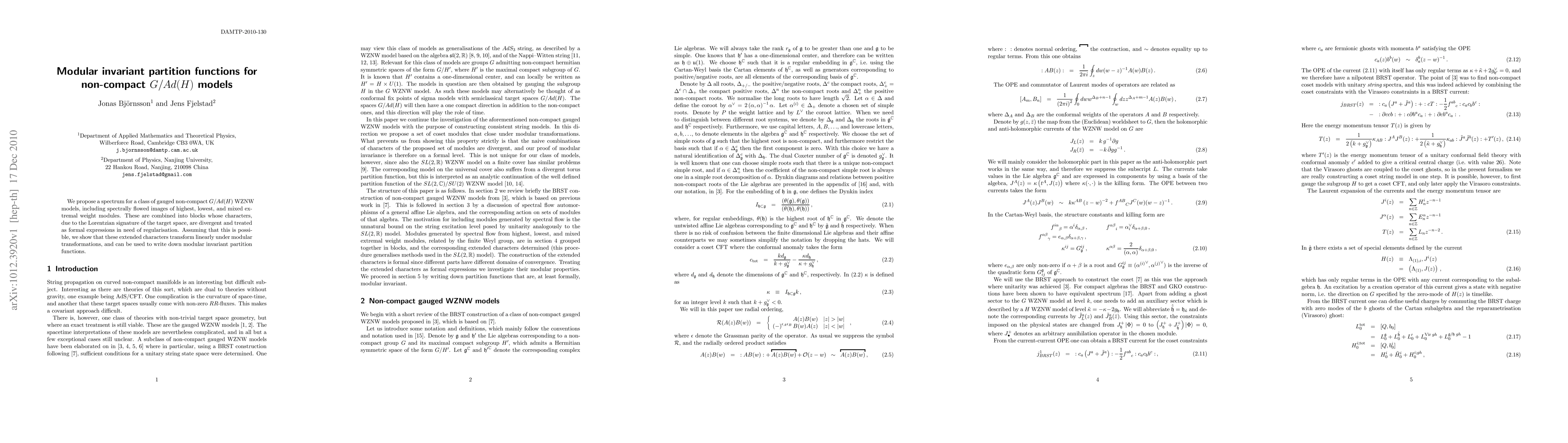 This paper proposes a spectrum for gauged non-compact G/Ad(H) Wess-Zumino-Novikov-Witten models, including spectrally flowed modules. It demonstrates that the divergent characters of these models can be regularized and transformed linearly under modular transformations, enabling the construction of modular invariant partition functions.