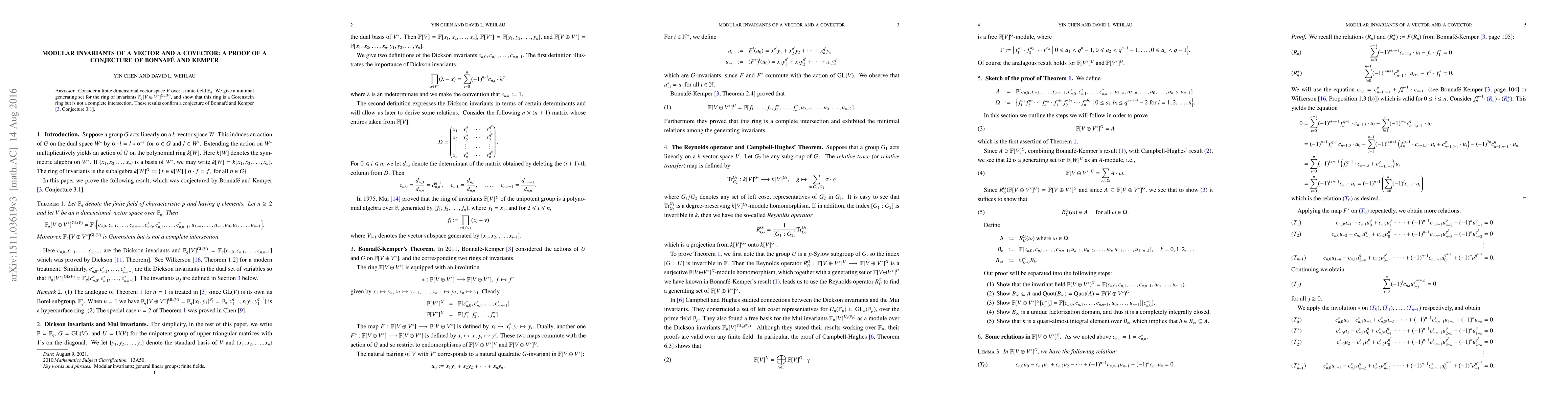 Summary: This paper provides a minimal generating set for the ring of invariants for a vector space and its dual over a finite field, confirming that the ring is Gorenstein but not a complete intersection, thereby proving a conjecture by Bonnafé and Kemper.