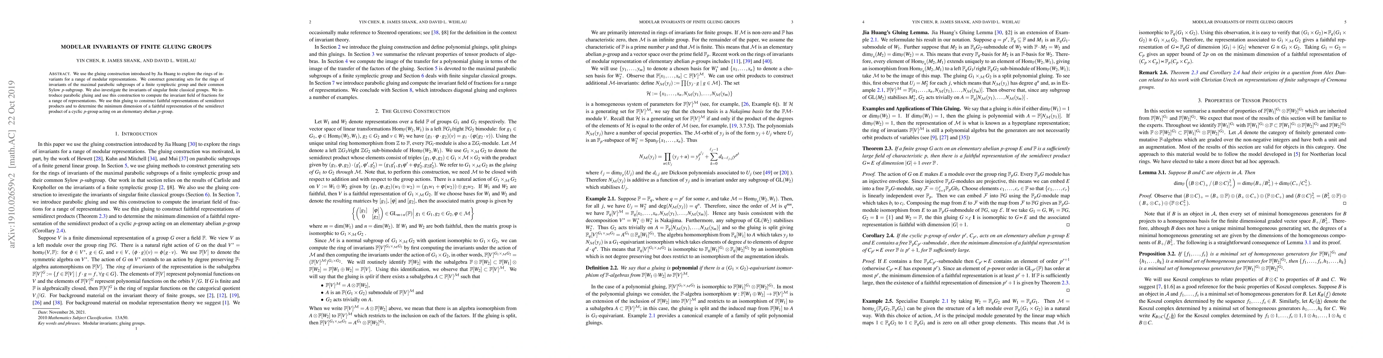 This paper constructs generating sets for invariant rings of maximal parabolic subgroups and their Sylow p-subgroups using modular gluing, and explores invariants for singular finite classical groups, determining minimal dimensions for faithful representations of semidirect products.