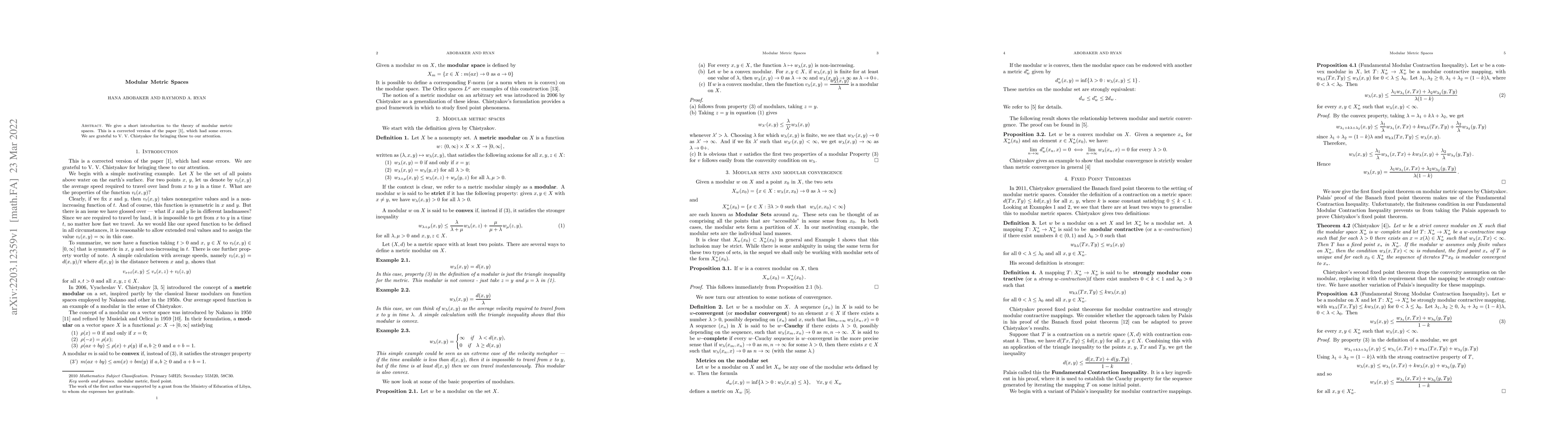 We give a short introduction to the theory of modular metric spaces. This is a corrected version of the paper [1], which had some errors. We are grateful to V. V. Chistyakov for bringing these to our attention.