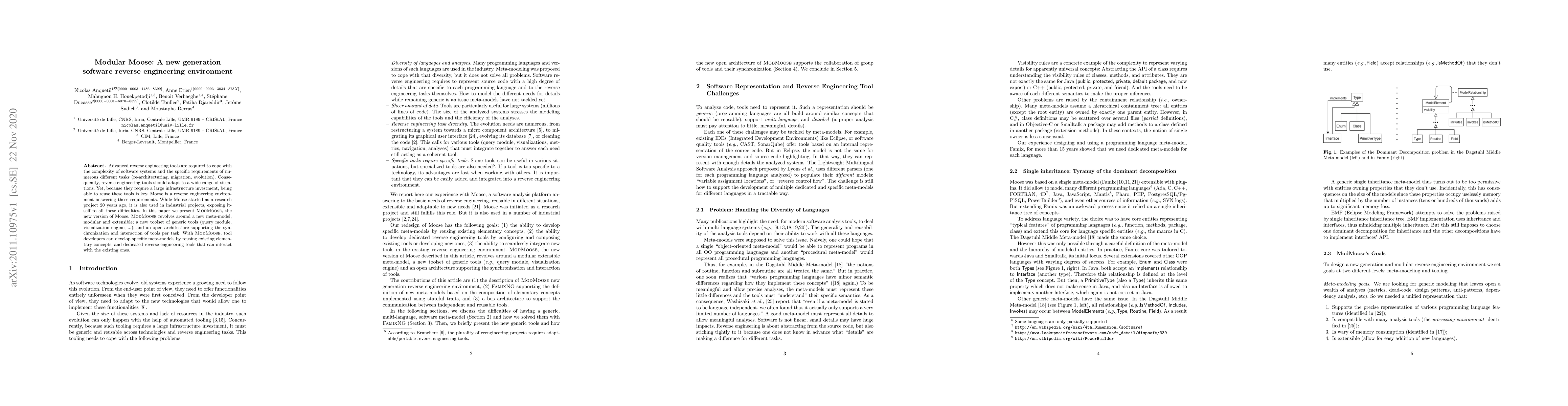 ModMoose is a new generation of the Moose reverse engineering environment, featuring a modular meta-model, a set of generic tools, and an open architecture to facilitate tool synchronization and interaction. It aims to enhance reusability and adaptability in complex software systems.