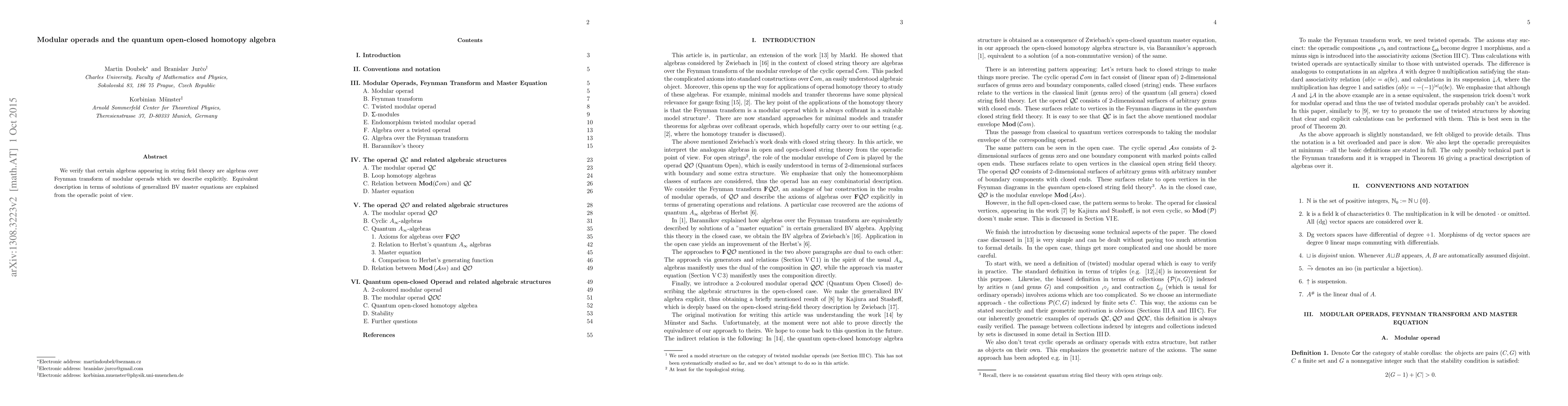 Summary: This paper identifies algebras in string field theory as algebras over Feynman transforms of modular operads, providing an explicit description and linking them to solutions of generalized BV master equations through an operadic framework.
