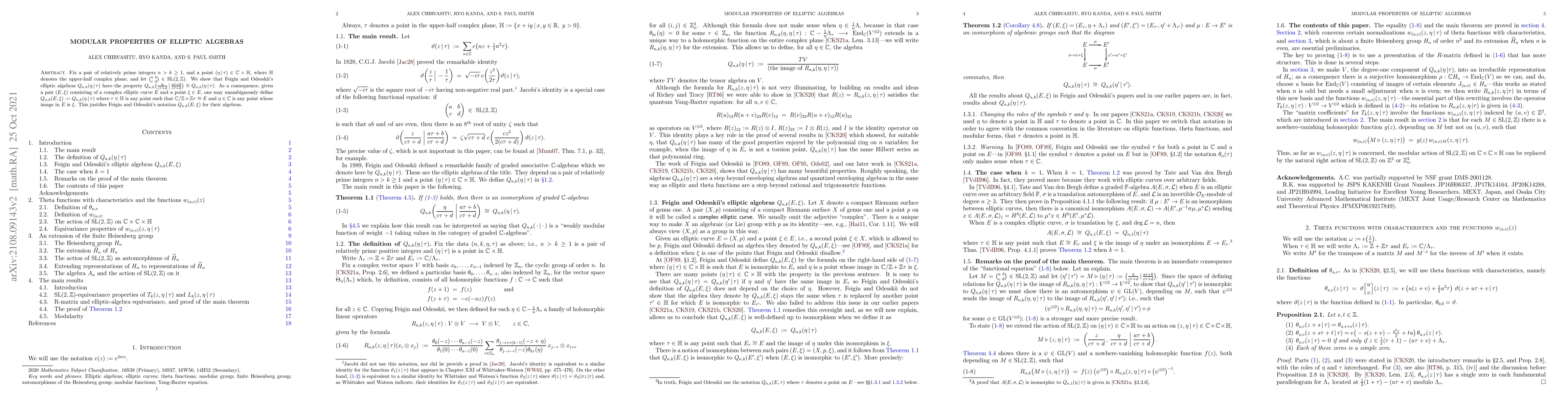 Fix a pair of relatively prime integers $n>k\ge 1$, and a point $(\eta\,|\,\tau)\in\mathbb{C}\times\mathbb{H}$, where $\mathbb{H}$ denotes the upper-half complex plane, and let ${{a\;\,b}\choose{c\,\;d}}\in\mathrm{SL}(2,\mathbb{Z})$. We show that Feigin and Odesskii's elliptic algebras $Q_{n,k}(\eta\,|\,\tau)$ have the property $Q_{n,k}\big(\frac{\eta}{c\tau+d}\,\big\vert\,\frac{a\tau+b}{c\tau+d}\big)\cong Q_{n,k}(\eta\,|\,\tau)$. As a consequence, given a pair $(E,\xi)$ consisting of a complex elliptic curve $E$ and a point $\xi\in E$, one may unambiguously define $Q_{n,k}(E,\xi):=Q_{n,k}(\eta\,|\,\tau)$ where $\tau\in\mathbb{H}$ is any point such that $\mathbb{C}/\mathbb{Z}+\mathbb{Z}\tau\cong E$ and $\eta\in\mathbb{C}$ is any point whose image in $E$ is $\xi$. This justifies Feigin and Odesskii's notation $Q_{n,k}(E,\xi)$ for their algebras.