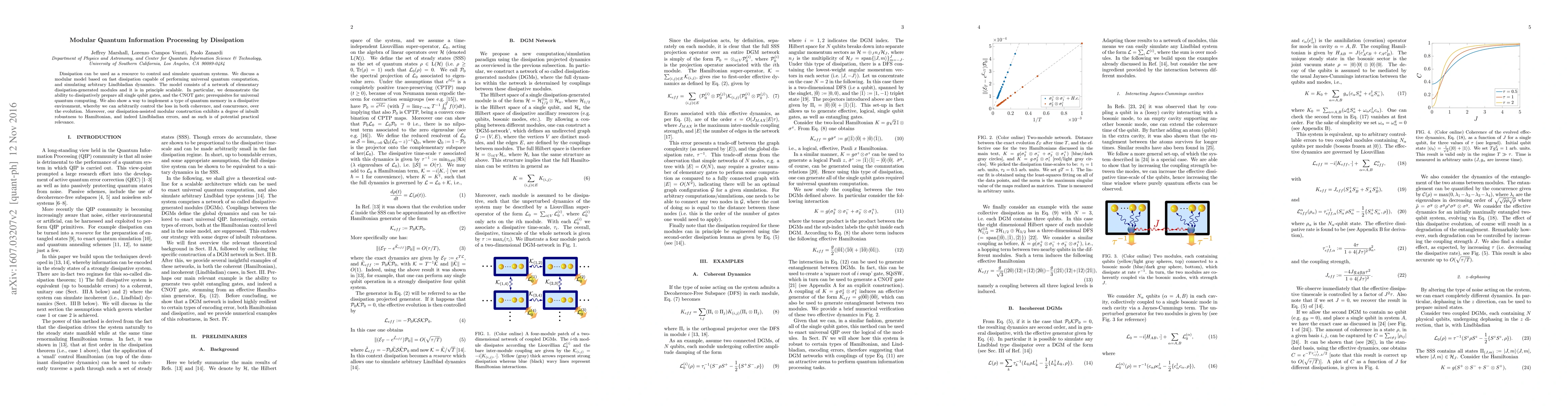 Dissipation can be used as a resource to control and simulate quantum systems. We discuss a modular model based on fast dissipation capable of performing universal quantum computation, and simulating arbitrary Lindbladian dynamics. The model consists of a network of elementary dissipation-generated modules and it is in principle scalable. In particular, we demonstrate the ability to dissipatively prepare all single qubit gates, and the CNOT gate; prerequisites for universal quantum computing. We also show a way to implement a type of quantum memory in a dissipative environment, whereby we can arbitrarily control the loss in both coherence, and concurrence, over the evolution. Moreover, our dissipation-assisted modular construction exhibits a degree of inbuilt robustness to Hamiltonian, and indeed Lindbladian errors, and as such is of potential practical relevance.