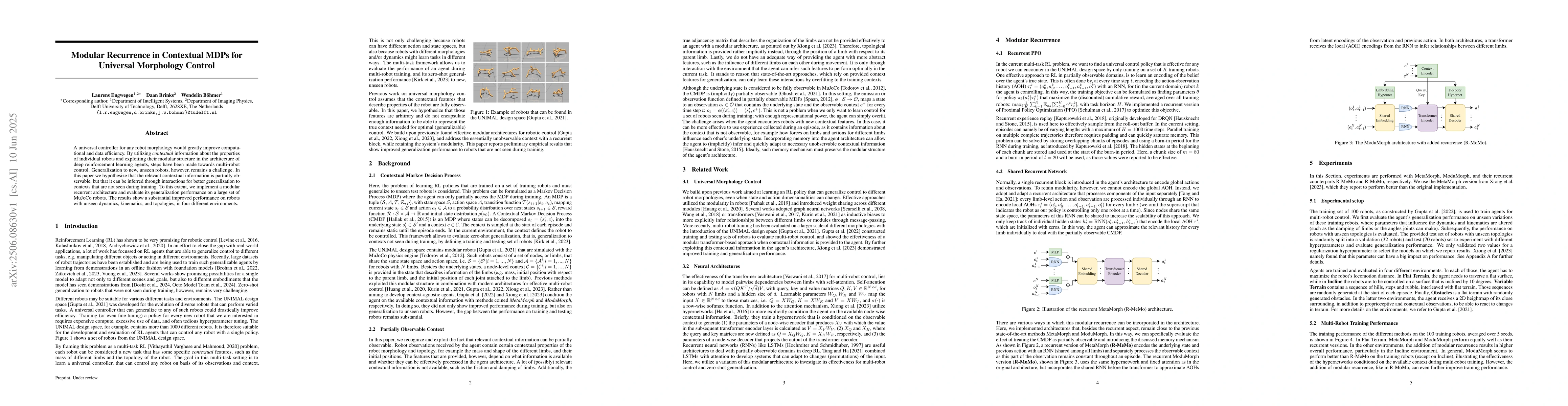 The work introduces a novel modular recurrent architecture that leverages contextual information and modular structure for better generalization to unseen robots with different dynamics, kinematics, and topologies.