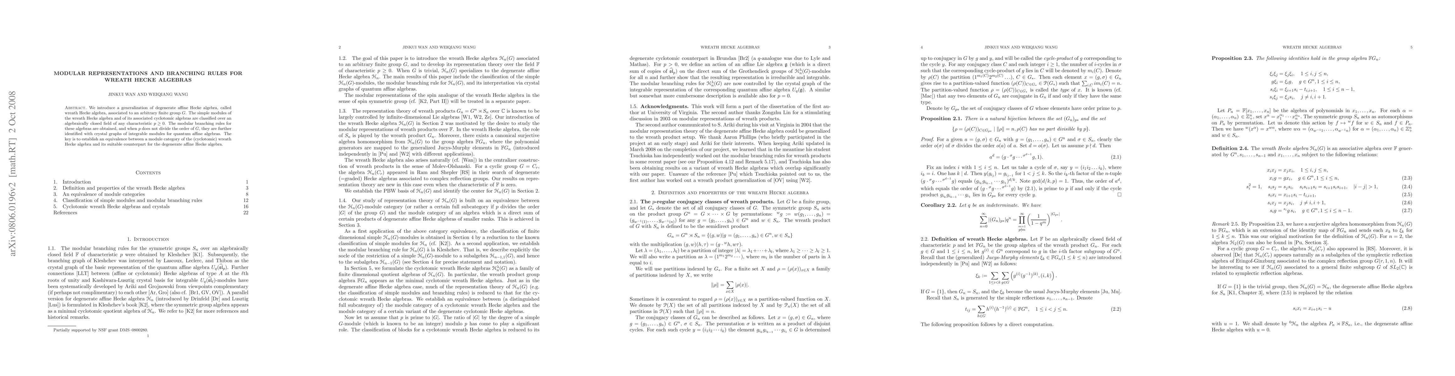 This paper classifies simple modules for wreath Hecke algebras associated with finite groups G and establishes modular branching rules. It identifies these rules with crystal graphs of quantum affine algebras when the characteristic does not divide the group order, leveraging an equivalence between module categories.