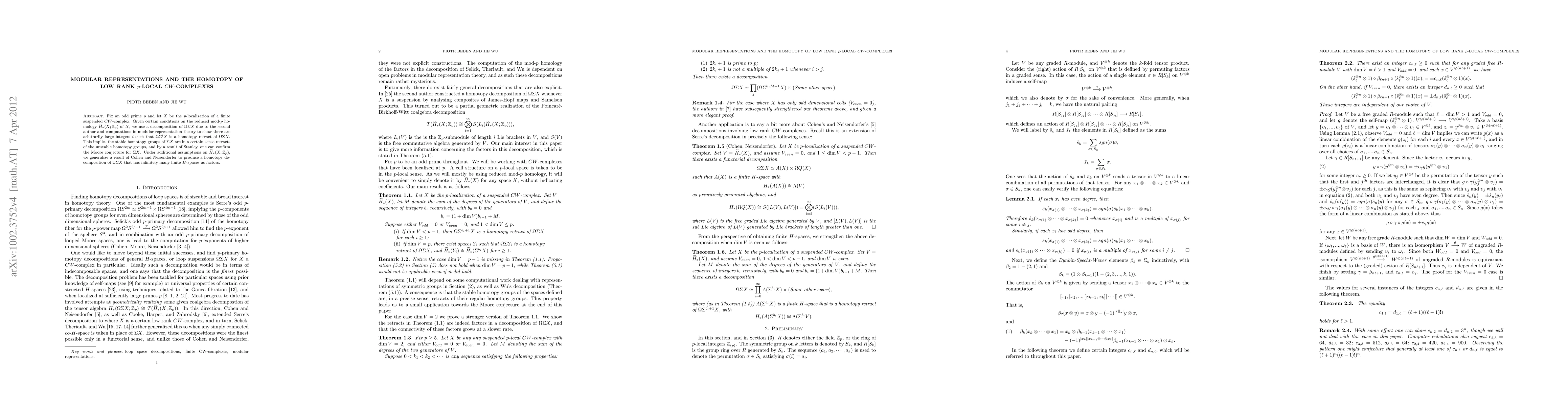 Fix an odd prime $p$ and let $X$ be the $p$-localization of a finite suspended $CW$-complex. Given certain conditions on the reduced mod-$p$ homology $\bar H_*(X;\zmodp)$ of $X$, we use a decomposition of $\Omega\Sigma X$ due to the second author and computations in modular representation theory to show there are arbitrarily large integers $i$ such that $\Omega\Sigma^i X$ is a homotopy retract of $\Omega\Sigma X$. This implies the stable homotopy groups of $\Sigma X$ are in a certain sense retracts of the unstable homotopy groups, and by a result of Stanley, one can confirm the Moore conjecture for $\Sigma X$. Under additional assumptions on $\bar H_*(X;\zmodp)$, we generalize a result of Cohen and Neisendorfer to produce a homotopy decomposition of $\Omega\Sigma X$ that has infinitely many finite $H$-spaces as factors.