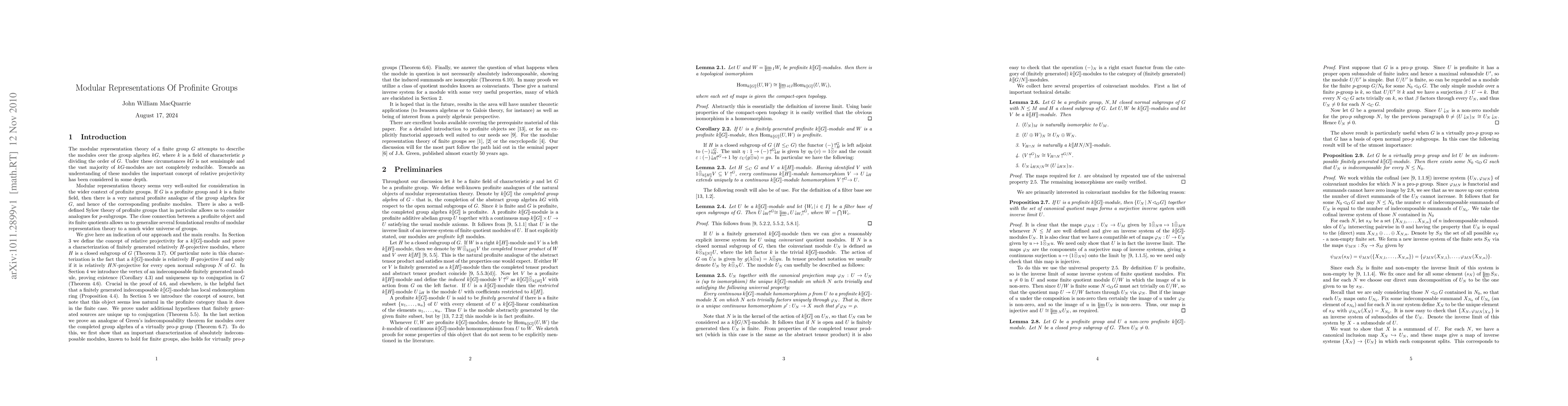 Two-line summary: This paper extends foundational results from modular representation theory of finite groups to profinite groups, defining relative projectivity and introducing vertices and sources for indecomposable modules over the completed group algebra k[[G]]. It proves a direct analogue of Green's Indecomposability Theorem for virtually pro-p groups, maintaining conjugacy properties for sources under additional assumptions.