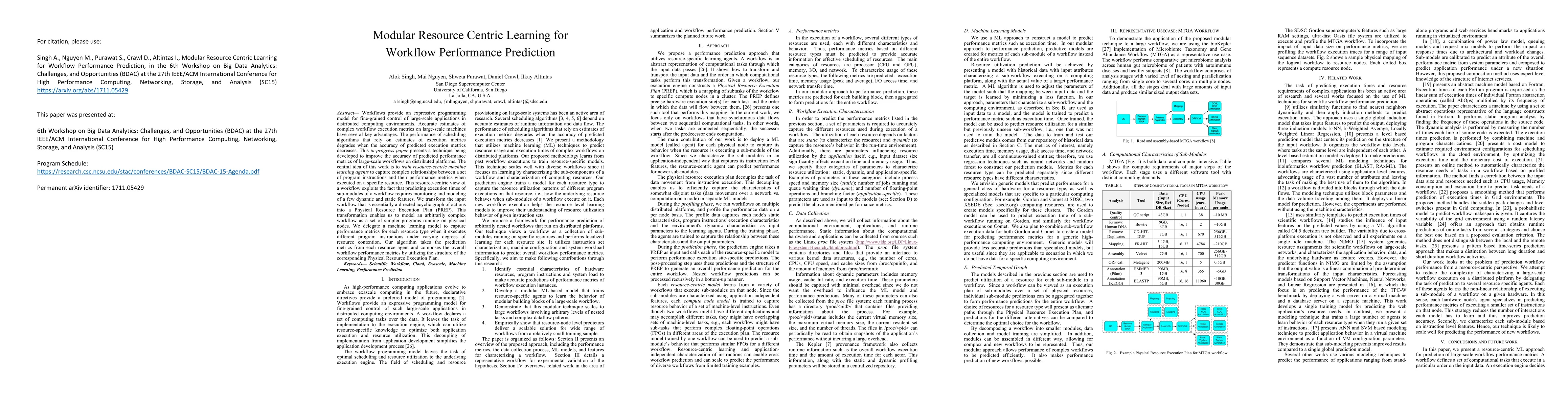 This paper proposes a modular approach to enhance the accuracy of performance predictions for large-scale workflows in distributed computing. It trains resource-centric machine learning agents to model the execution metrics of workflow sub-modules, transforming workflows into a Physical Resource Execution Plan to simplify complex predictions.