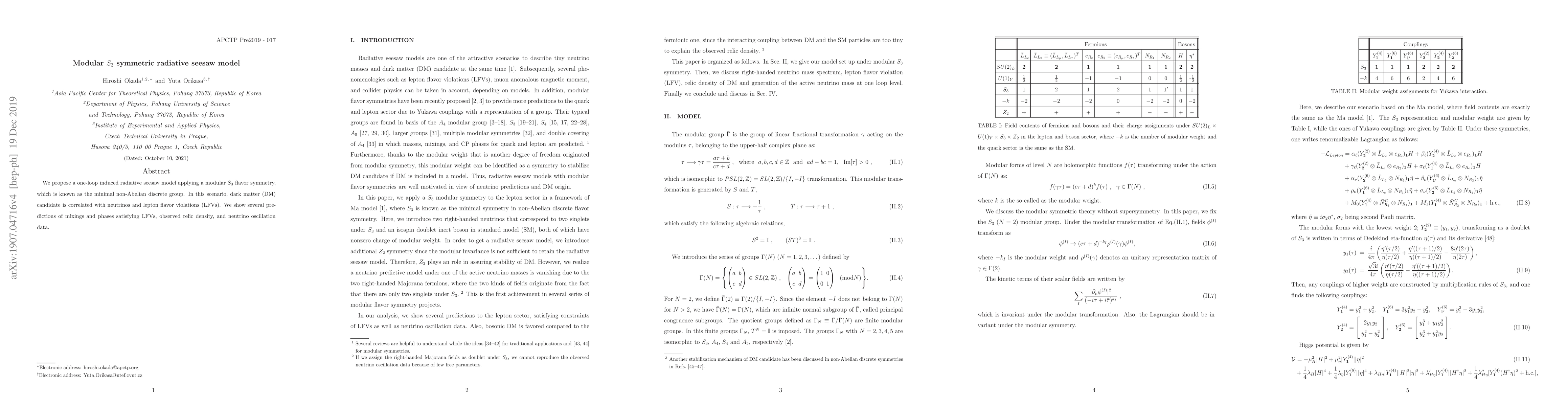 We propose a one-loop induced radiative seesaw model applying a modular $S_3$ flavor symmetry, which is known as the minimal non-Abelian discrete group. In this scenario, dark matter (DM) candidate is correlated with neutrinos and lepton flavor violations (LFVs). We show several predictions of mixings and phases satisfying LFVs, observed relic density, and neutrino oscillation data.