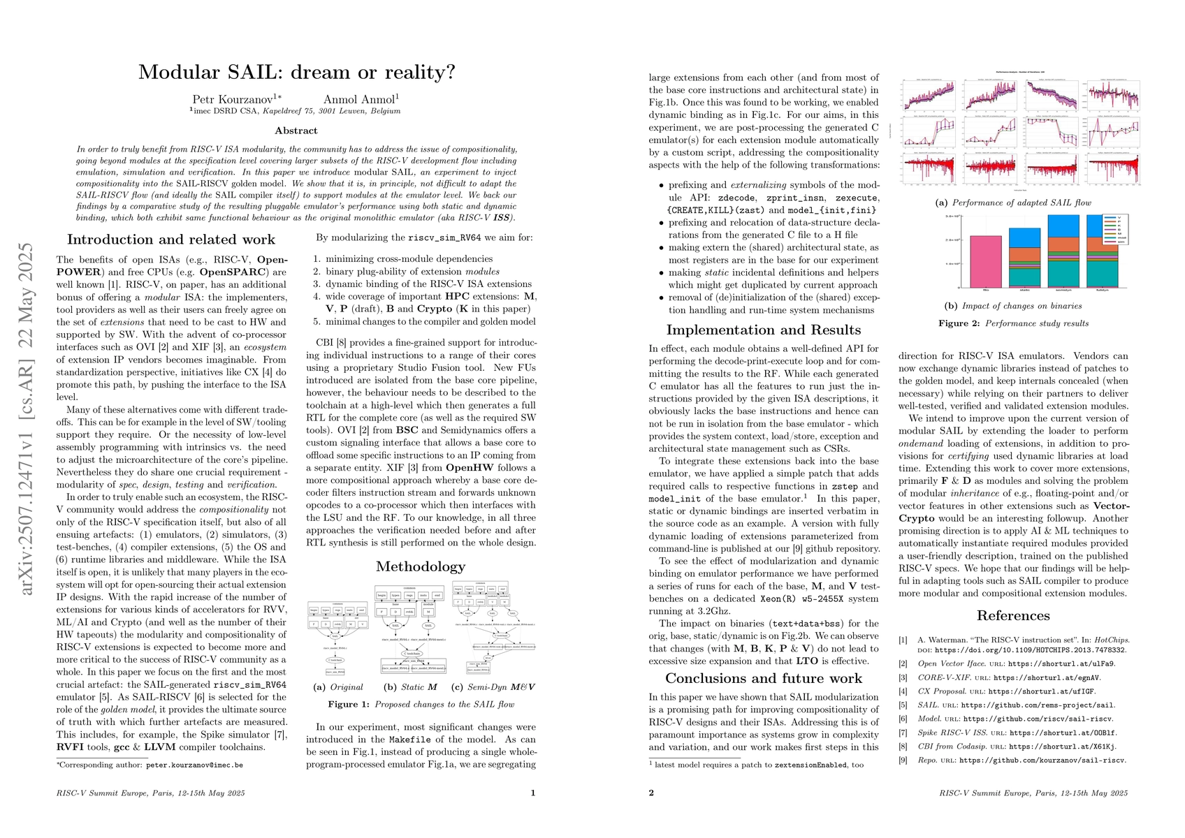 In order to truly benefit from RISC-V ISA modularity, the community has to address the issue of compositionality, going beyond modules at the specification level covering larger subsets of the RISC-V development flow including emulation, simulation and verification. In this paper we introduce modular SAIL, an experiment to inject compositionality into the SAIL-RISCV golden model. We show that it is, in principle, not difficult to adapt the SAIL-RISCV flow (and ideally the SAIL compiler itself) to support modules at the emulator level. We back our findings by a comparative study of the resulting pluggable emulator's performance using both static and dynamic binding, which both exhibit same functional behavior as the original monolithic emulator (aka RISC-V ISS).