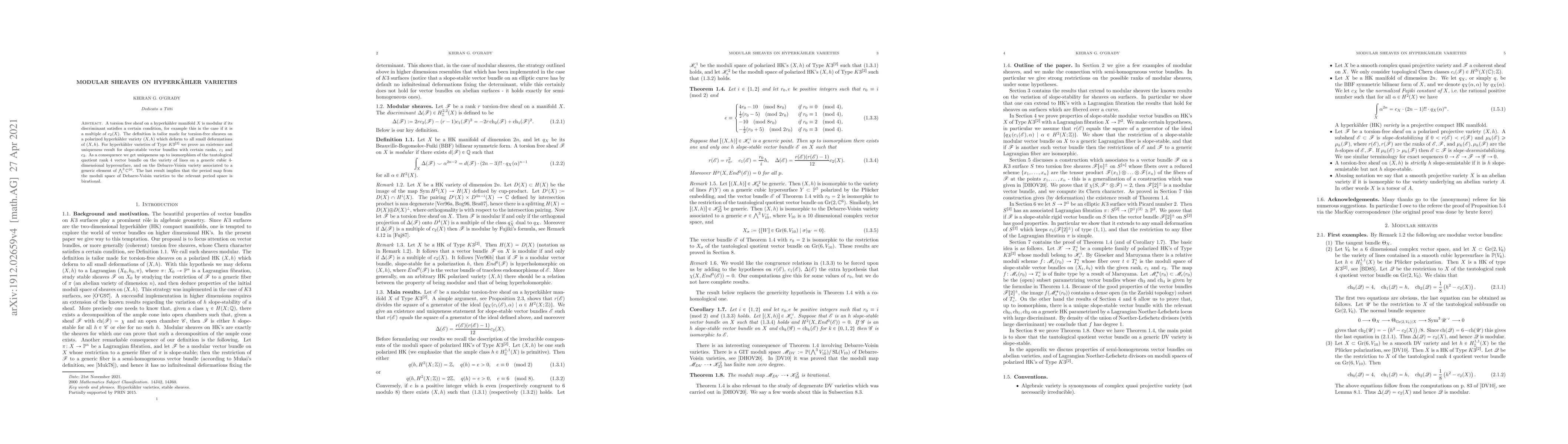 The paper introduces and develops the concept of modular sheaves on hyperkähler varieties, extending previous work on torsion-free sheaves and their stability conditions.