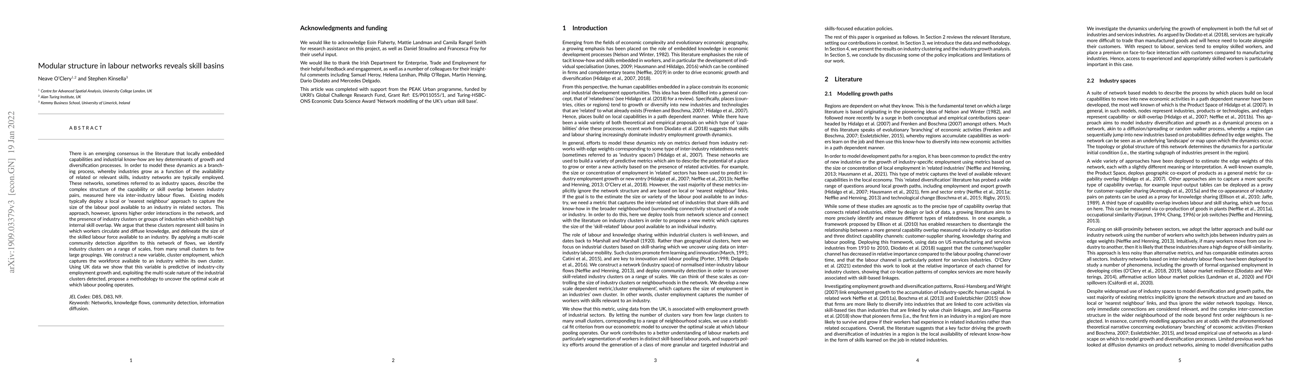 There is an emerging consensus in the literature that locally embedded capabilities and industrial know-how are key determinants of growth and diversification processes. In order to model these dynamics as a branching process, whereby industries grow as a function of the availability of related or relevant skills, industry networks are typically employed. These networks, sometimes referred to as industry spaces, describe the complex structure of the capability or skill overlap between industry pairs, measured here via inter-industry labour flows. Existing models typically deploy a local or 'nearest neighbour' approach to capture the size of the labour pool available to an industry in related sectors. This approach, however, ignores higher order interactions in the network, and the presence of industry clusters or groups of industries which exhibit high internal skill overlap. We argue that these clusters represent skill basins in which workers circulate and diffuse knowledge, and delineate the size of the skilled labour force available to an industry. By applying a multi-scale community detection algorithm to this network of flows, we identify industry clusters on a range of scales, from many small clusters to few large groupings. We construct a new variable, cluster employment, which captures the workforce available to an industry within its own cluster. Using UK data we show that this variable is predictive of industry-city employment growth and, exploiting the multi-scale nature of the industrial clusters detected, propose a methodology to uncover the optimal scale at which labour pooling operates.