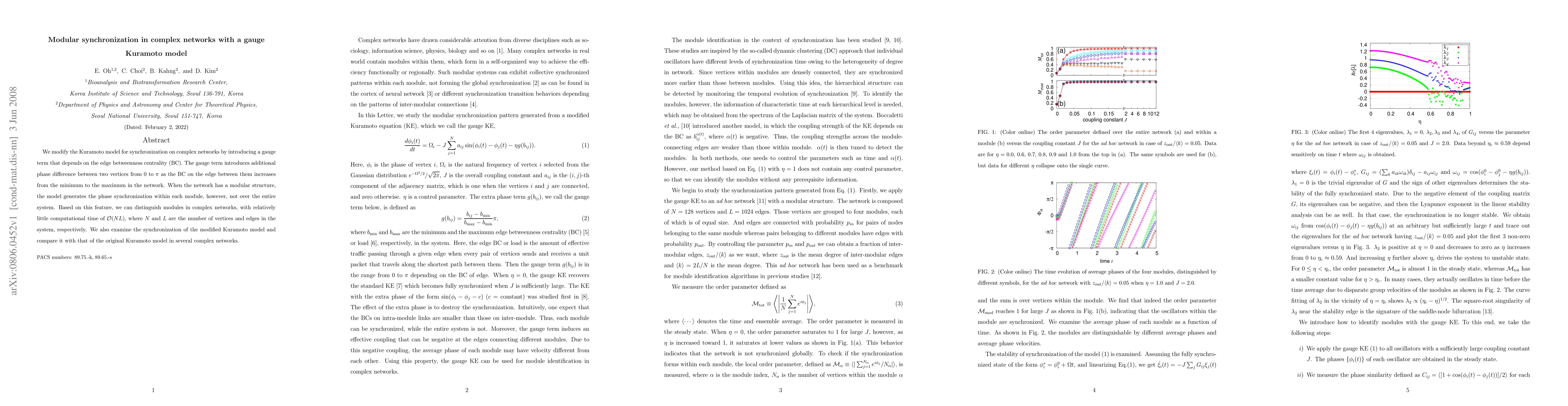 The research introduces a gauge term that depends on edge betweenness centrality (BC) to modify the Kuramoto model for synchronization on complex networks.