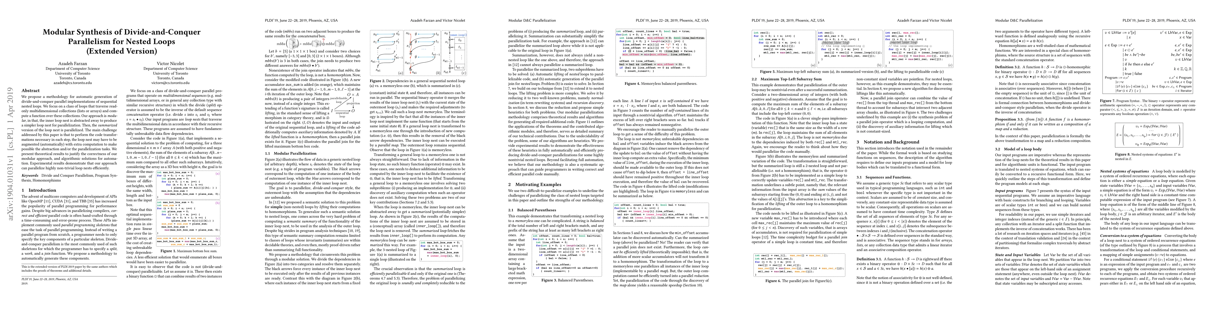 This paper proposes a modular synthesis methodology for automatically generating divide-and-conquer parallel implementations of nested loops over read-only multidimensional collections. The approach abstracts inner loop nests to simplify parallelization, addressing the challenge of augmenting loops with extra computation for abstraction and parallelization.