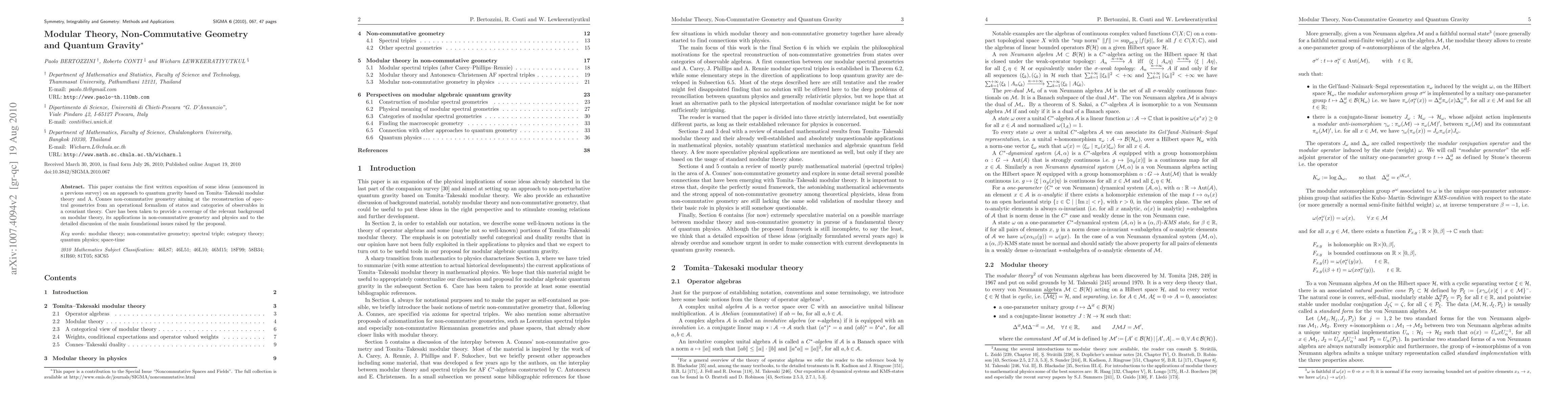 The paper formalizes the use of modular spectral triples in non-commutative geometry, extending the application of Tomita-Takesaki theory to a broader range of physical systems, including quantum gravity.